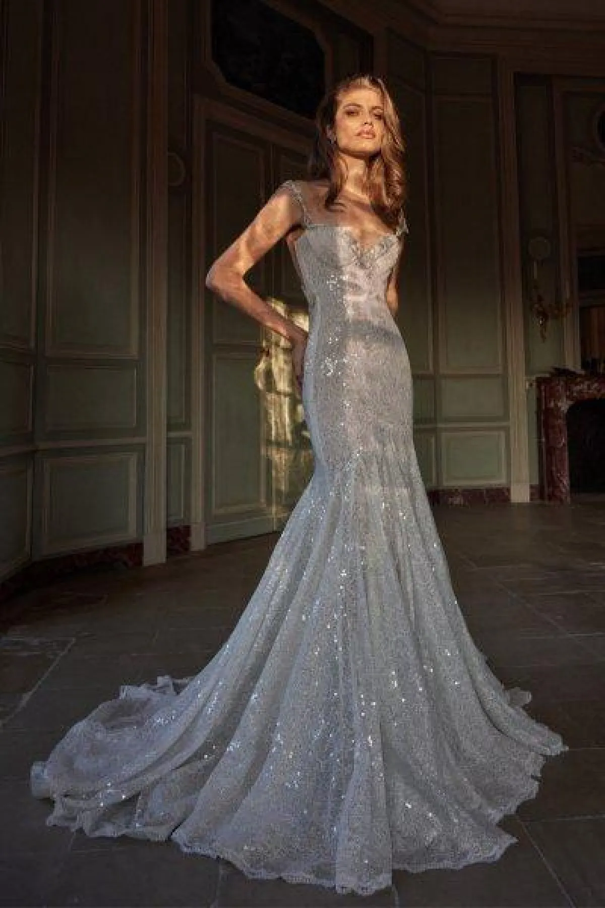 وفي تشكيلة خريف 2020، قدمت المصمم ثوب ناعم بقصّة حورية البحر وبحمّالات عريضة وذيل ينسدل على الأرض.