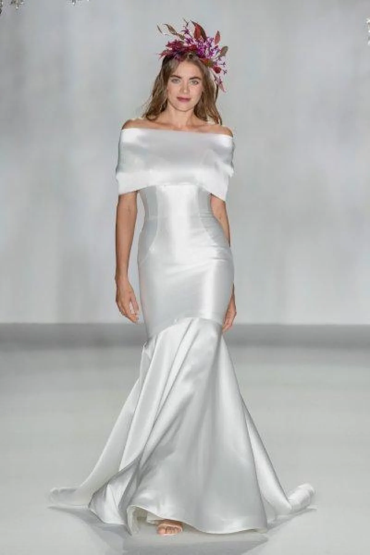 قدمت ماركة أمسال Amsale فستان زفاف ضيق بقصّة حورية البحر، وتميز بتصميمه البسيط ليعكس شخصية العروس الناعمة.