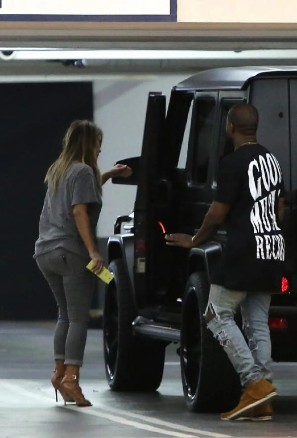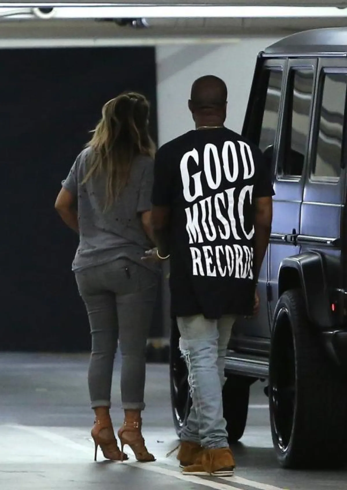 وقد ظهرت Kim وKanye وهما في طريقهما ليستقلا سيارتهما سوياً، فسارع مصورو البابارتزي لالتقاط الصور لهما، والتي نشرها على الفور موقع "Just Jared"، وما لفت الأنظار أن Kim وKanye ظهرا في الصور من الخلف ولم يلتفتا للمصور.