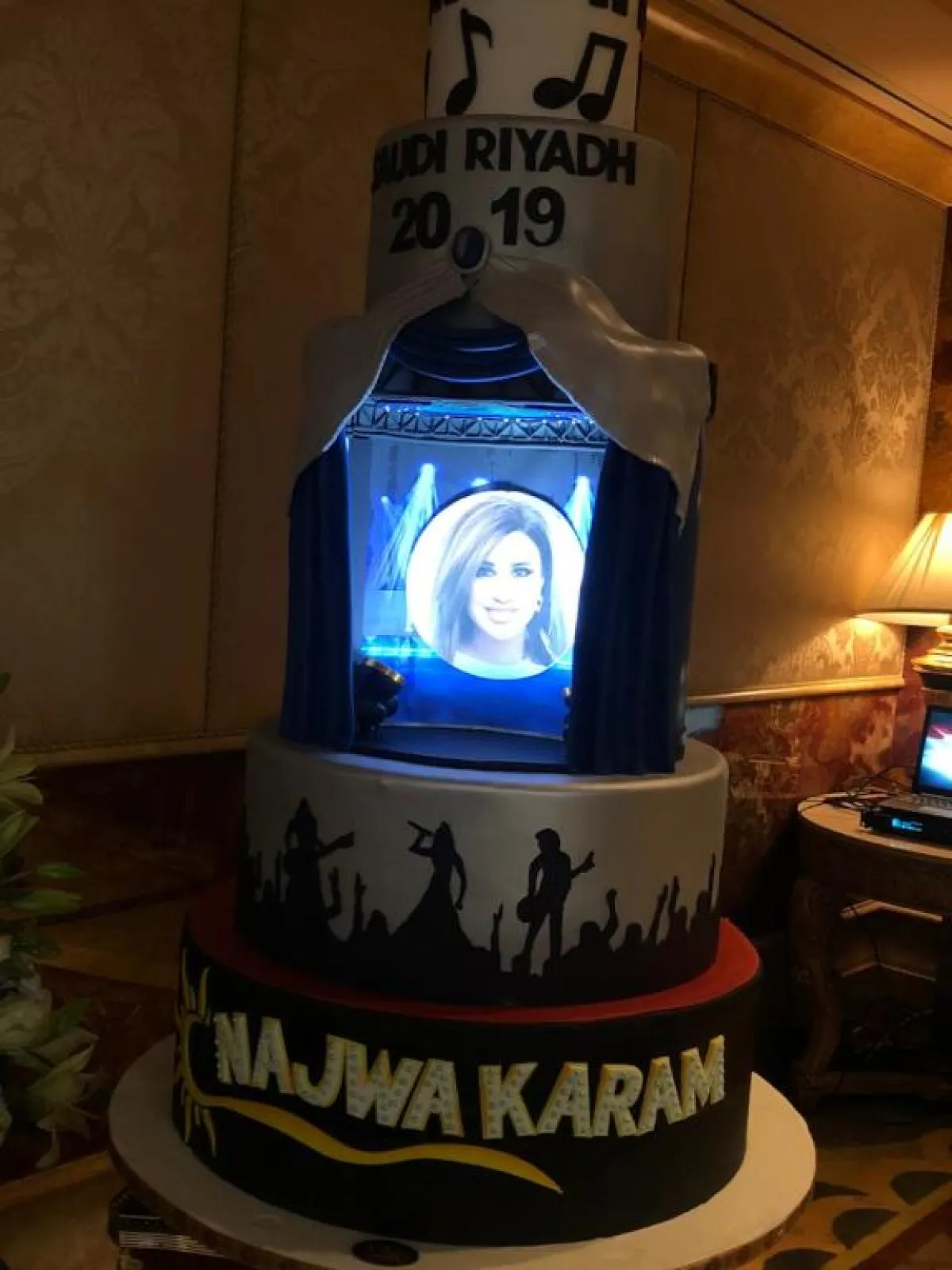 كذلك قدّموا إليها العلم اللبناني، وغنت معهم أغنيتها "الله ياخد بيدك"، وقطعت قالب الحلوى. لتنتقل الى غرفتها استعدادًا لحفلها اليوم.