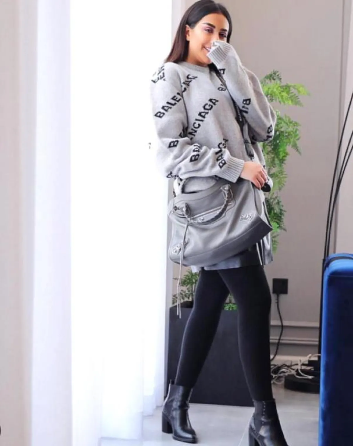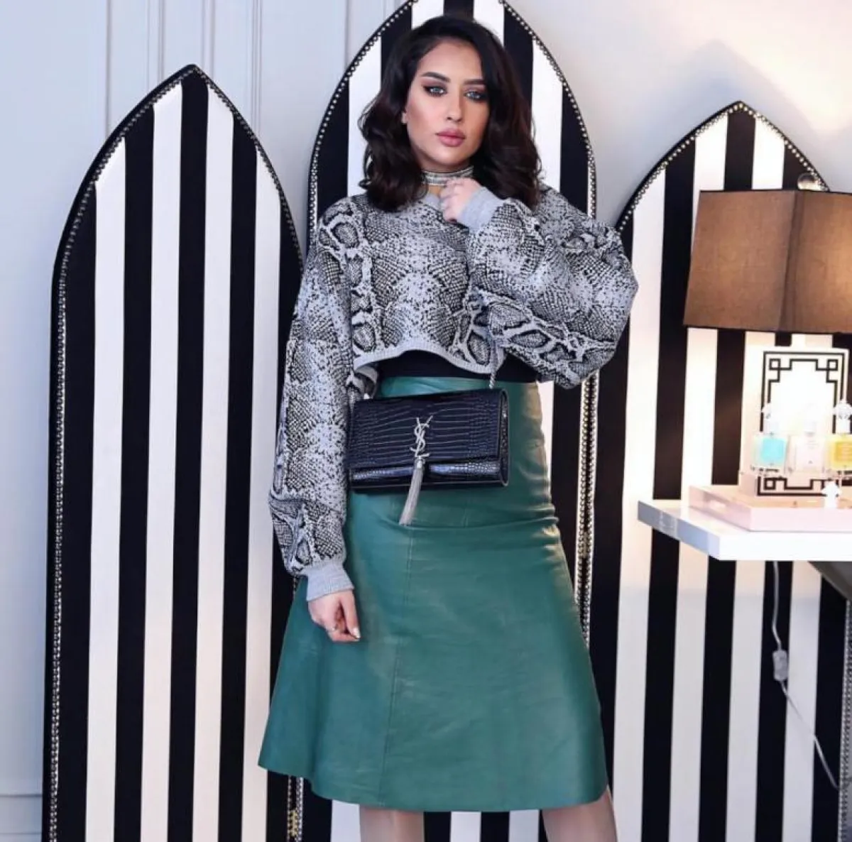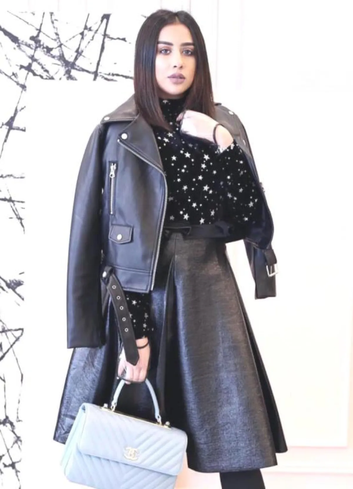 وارتدت في الإطلالة السادسة بنطالًا أسود مصنوعًا من القطن مع بلوزة طويلة رمادية مزينة بكتابات سوداء، وجمعت في إطلالة بسيطة بنطالًا أسود وبلوزة سوداء مزينة بأكمام زهرية اللون، ونسقت تنورة سوداء منفوشة مع بلوزة سوداء برسوم بيضاء وجاكيت جلد أسود لإطلالة أنيقة تميل للفخامة. كما تجملت بتنورة خضراء قصيرة وبلوزة سوداء قصيرة بطبعات أفعى لمظهر أنيق، وتزينت بمعطف رمادي طويل وبوت طويل كحلي، واختارت إطلالة يومية مميزة بتنسيقها لمعطف كاروهات وبنطال جينز وبلوزة سوداء، وتأنَّقت بمعطف رمادي مزين بالزهري مع بلوزة رمادية وتنورة قصيرة سوداء أكملتهما ببنطال قطني أسود.