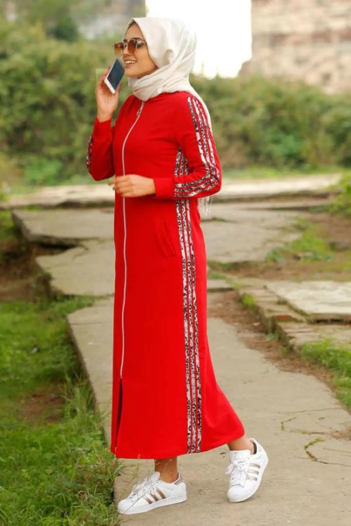 أعجبنا هذا اللون الأحمر من تصميم العبايه الرياضية لـ Neva Style ، مع الخط الجانبي اللامع، جريء ومختلف، مناسب حتى لمشاويركِ مع الصديقات في المساء، لاطلالة تجمع بين الكاجوال والكلاسيك.