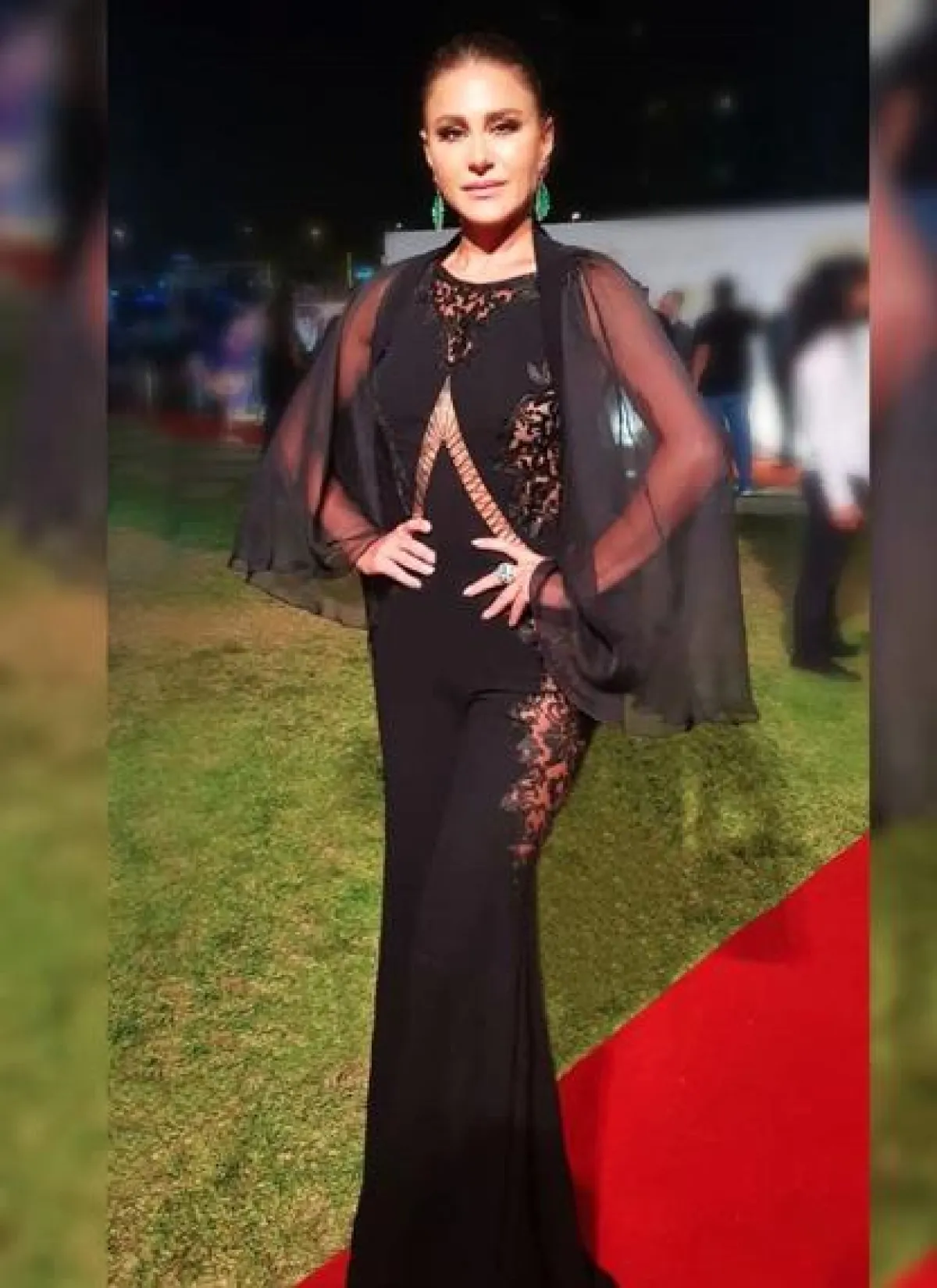 ديما قندلفت في فستان أسود بتصميم مبتكر