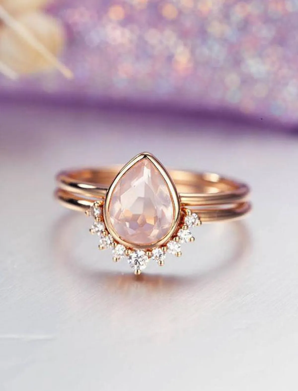 خواتم خطوبة ذهبية مع الحجر الوردي