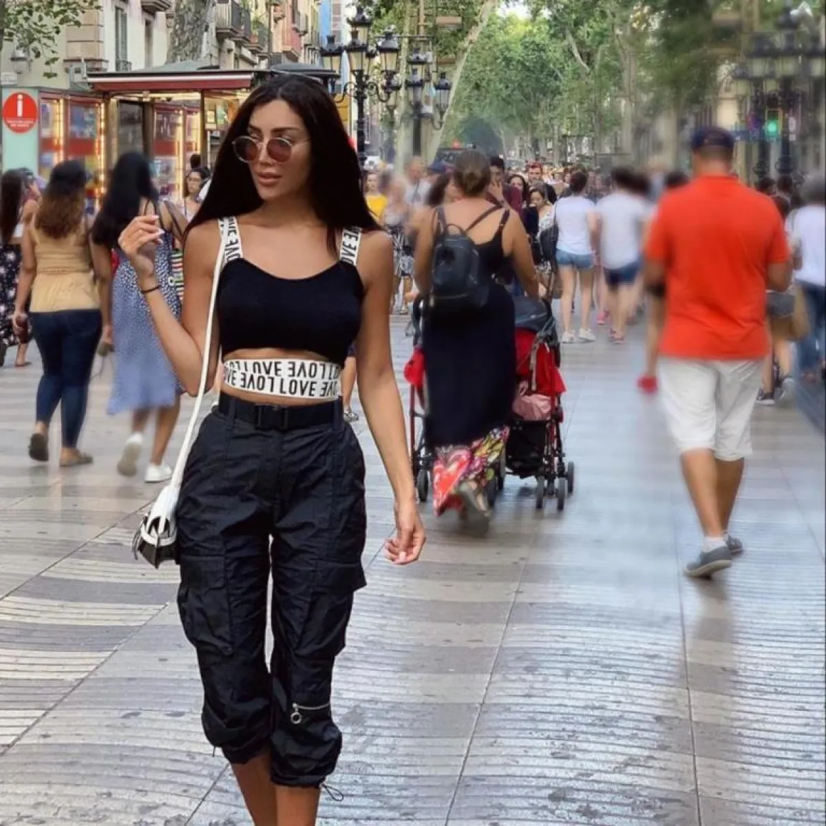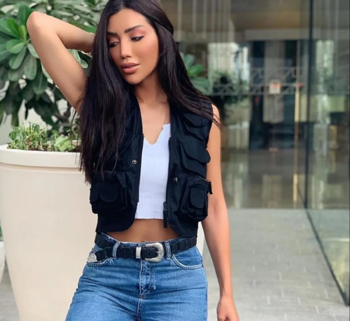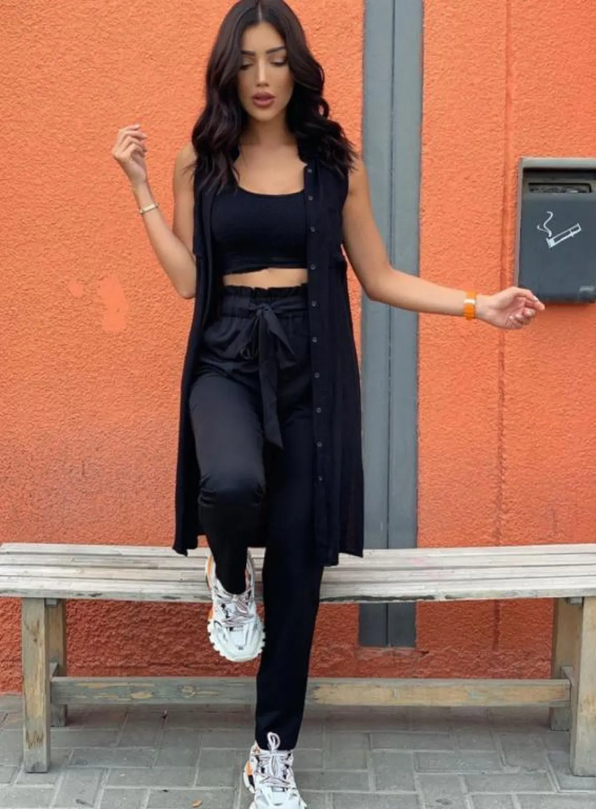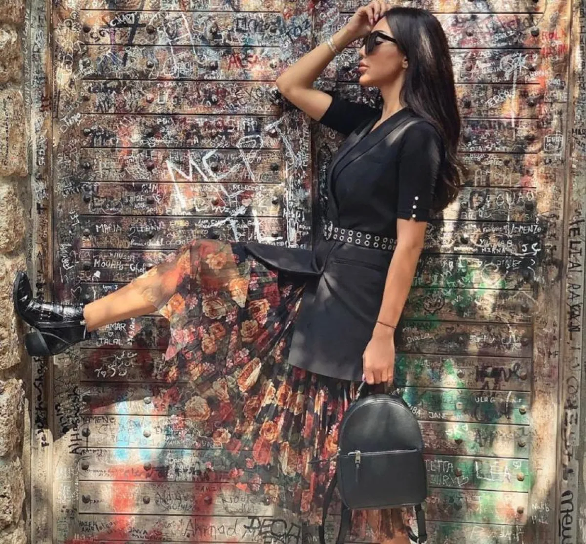 واختارت بنطالًا وبلوزة باللون الأسود مع جاكيت جينز، وتزينت ببلوزة بيضاء وبنطال جينز مع جاكيت أسود، ونسقت بنطالًا من الجينز الداكن مع بلوزة سوداء وجاكيت أصفر، وتميزت بإطلالة رسمية شبابية بمعطف طويل رسمي أسود مزين بحزام وتنورة سوداء مزينة بزهور ملونة، وأكملت ملحقاتها من حقيبة ظهر وبوت قصير باللون الأسود أيضًا، ولإطلالة أخيرة ارتدت فستانًا أسودَ قصيرًا مزينًا بكشكشة.