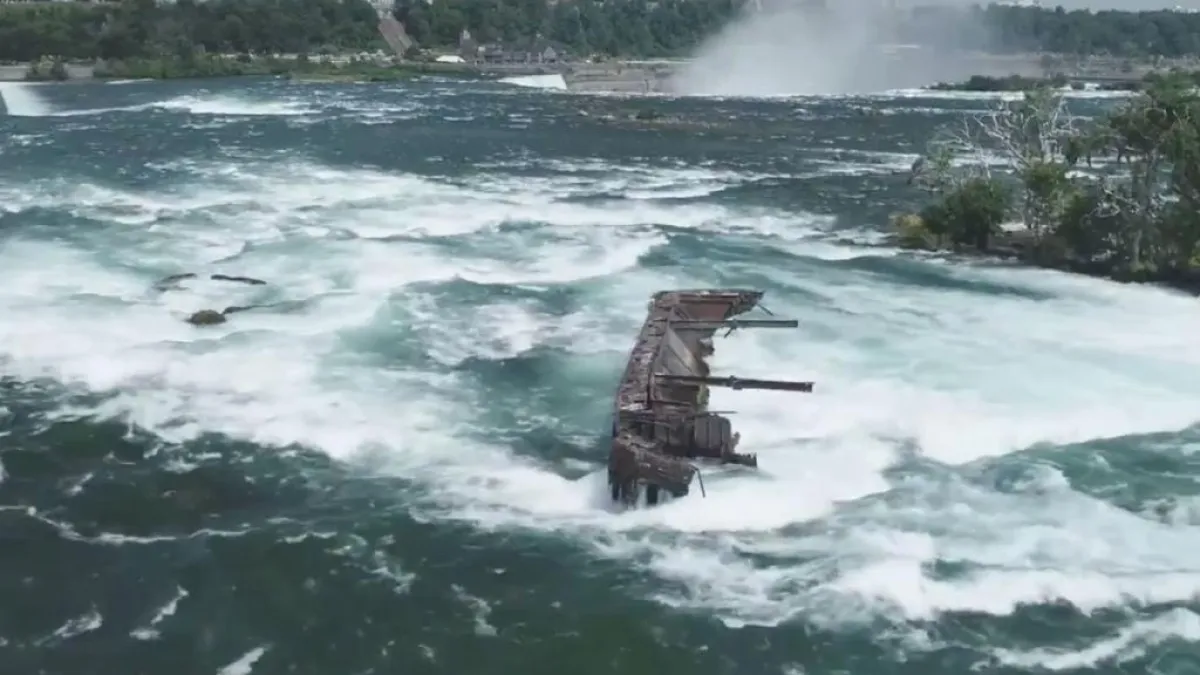ووفق وكالة «د ب أ»، تحرك قارب حديدي عالق على صخور في منحدر بالقرب من «شلالات نياجارا» بكندا لأول مرة منذ 101 عام.