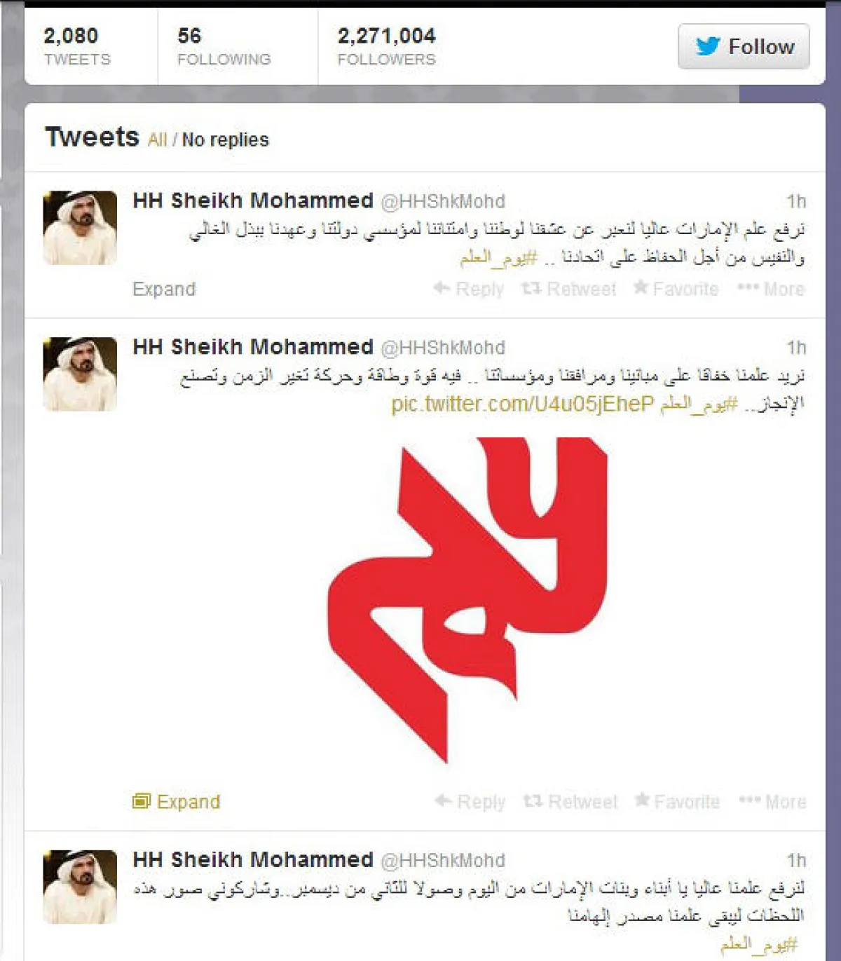 ضرار بالهول الفلاسي مدير عام مؤسسة "وطني الإمارات" قال: "شرف كبير لمؤسسة "وطني الإمارات" أن يكون الظهور الأول لشعارها "علم" المصمم خصيصاً لاحتفالية وفعاليات يوم العَلَم على صفحة الشيخ محمد بن راشد آل مكتوم نائب رئيس الدولة رئيس مجلس الوزراء حاكم دبي، والذي يحمل أيضا عبارة "هذا علم داري وهذا أساسي".