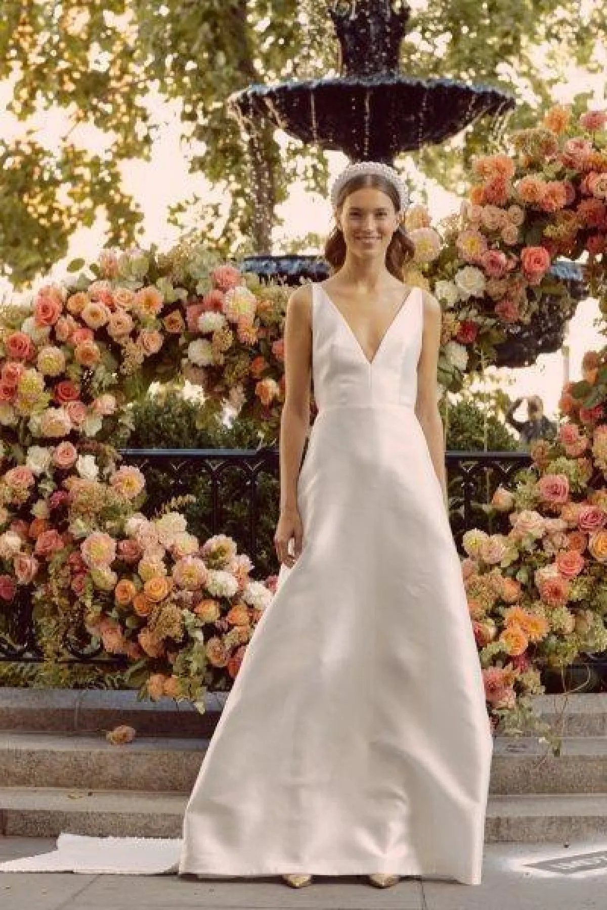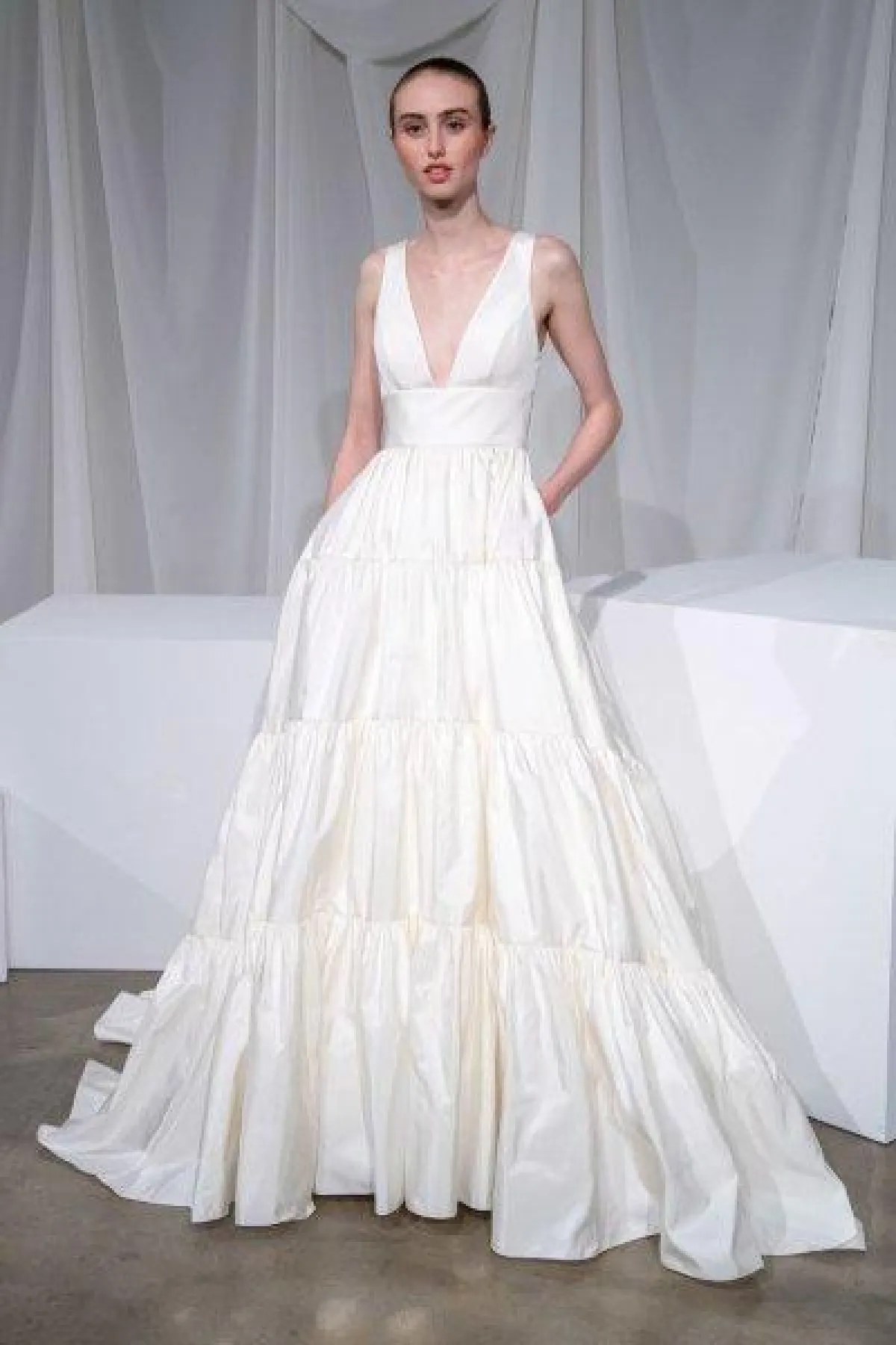 وقدمت مجموعة من الماركات فساتين زفاف بقبّة V مع قصّات مختلفة.