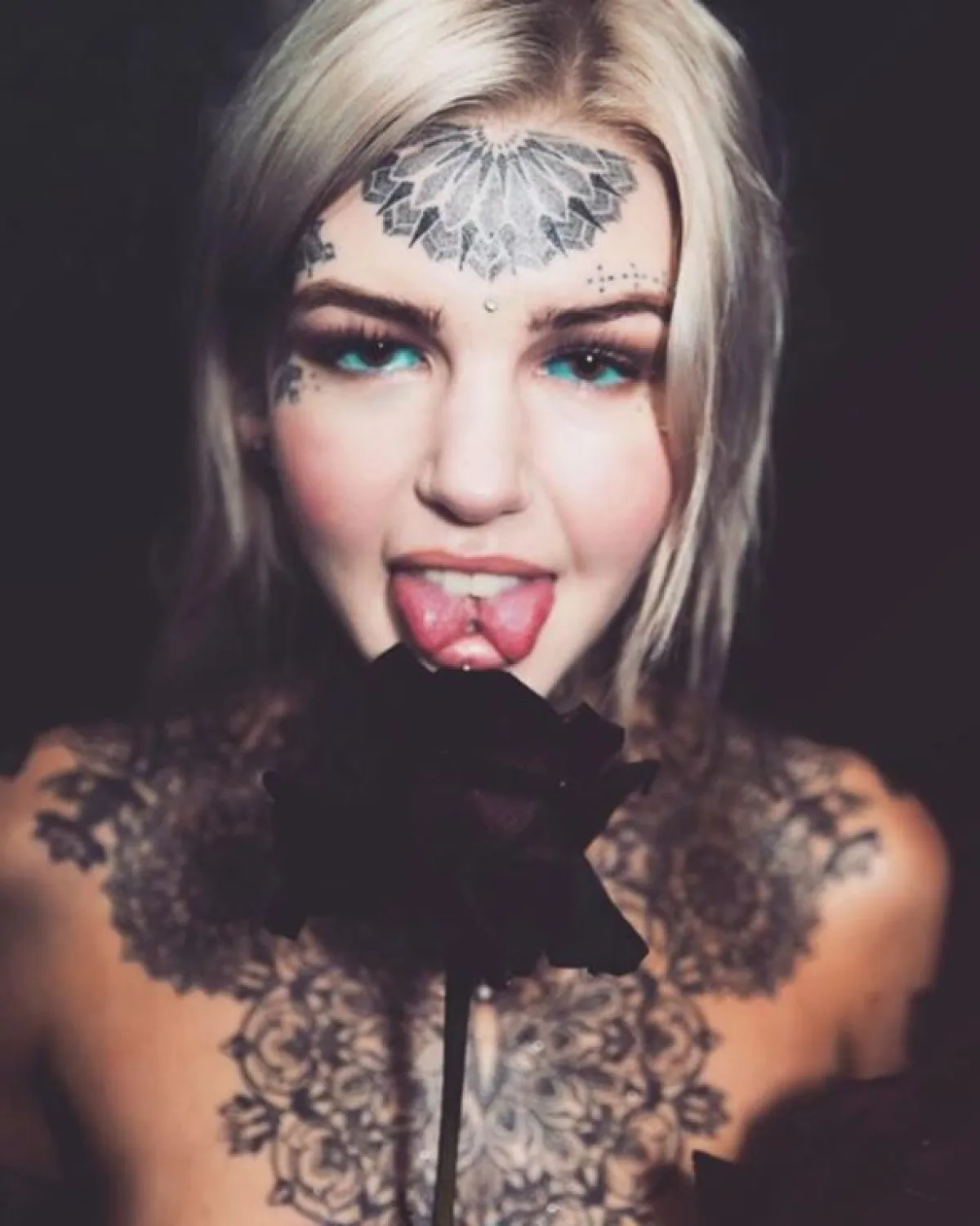 وتابعت ميرور، أن آمبر لوك، التي تُلقب نفسها بـ«التنين الأبيض أزرق العينين»، كانت قد رسمت على وجهها وجسدها ما يزيد عن الـ200 وشم مختلف، كان أخطرها وأكثرها إيلاماً الوشم في مقلتيها. وصرحت لوك لوسائل الإعلام واصفة عملية وشم عينيها بالقول: «كان شعوراً مروعاً، فعندما اخترقت إبرة الوشم مقلة عيني بالحبر، شعرت وكأن رسام الوشم أمسك بعشرات الشظايا من الزجاج المُكسر وبدأ يفركها كلها بعيني».