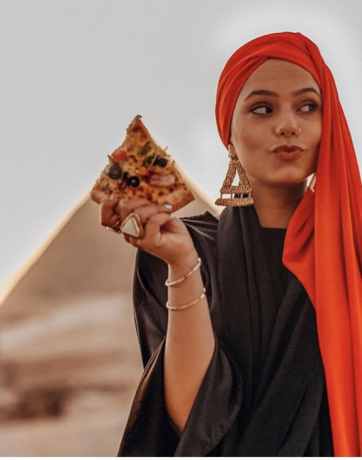 وتعتمد مع هذه اللفات اكسسوارات من أقراط الأذن أنيقة ومميزة، مع الأسلوب العصري للفات حجاب التوربان.