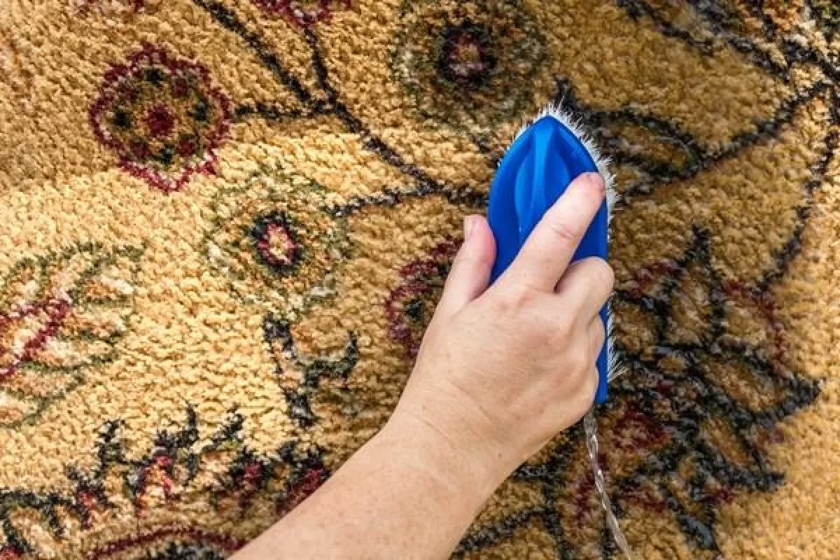 • في إطار تنظيف السجاد، يُشترى منظف خاص بالسجاد، مع اختباره على سجادة قديمة مبقعة (أو على طرف السجادة)، للتأكُّد من فاعليته، قبل استخدامه على كامل السجادة، مع تركها تجف.