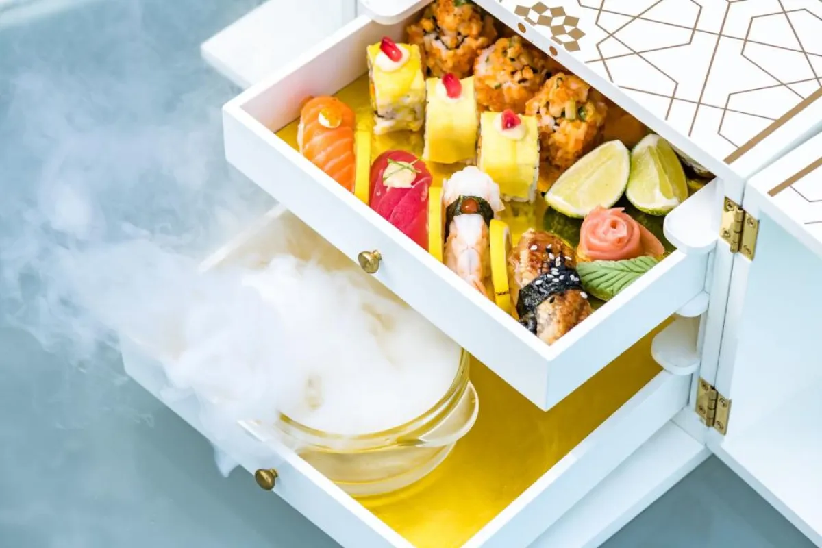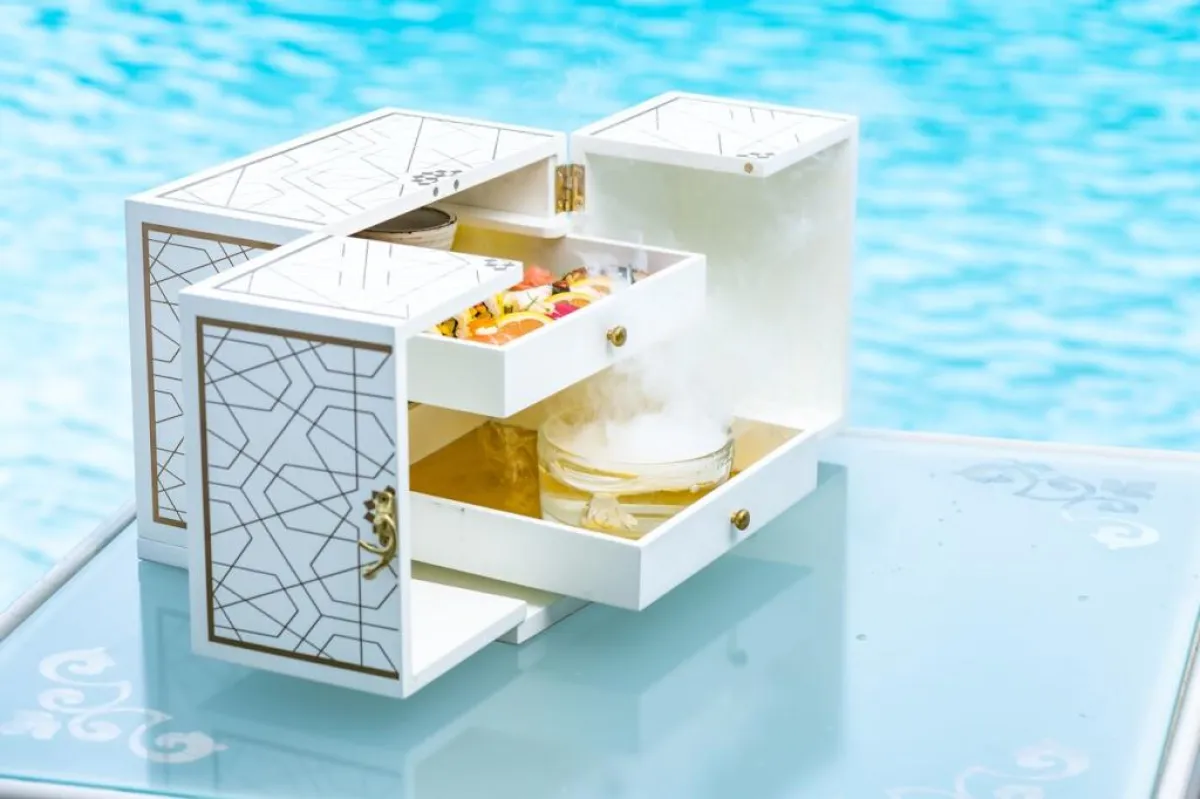 خلال تجربة السوشي المميزة هذه، ستكون بانتظار الضيوف تشكيلة من اللفائف والنيجيري، بما فيها هذه اللفائف اليابانية اللذيذة المدخنةً مع ثلج جاف، ليستمتع الضيوف بمذاقها الآسر، فيما يتأملون حوض السباحة الرائع والمساحات الخضراء النابضة بالحيوية، والمياه المتلألئة الباعثة على الاسترخاء. لتمضية يوم جمعة لا يُنسى، ما عليك سوى زيارة لا بيسينا في فندق بلازو فيرساتشي، حيث تداعب أشعة الشمس حوض السباحة الفاخر بخيوطها الذهبية.