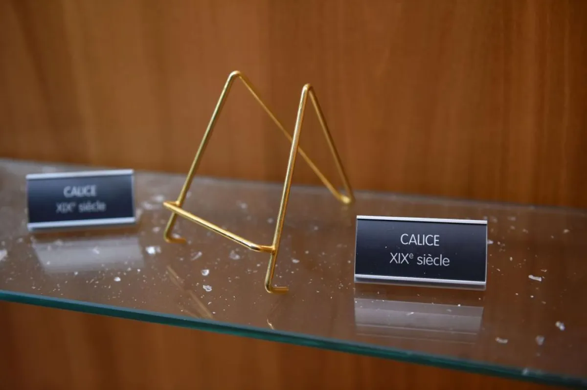 وعندما أصبحوا في الداخل سرق اللصوص الكؤوس وغيرها من الأغراض التي تستخدم في القداديس ومعظمها من الذهب، إضافة إلى لوحة تعود إلى القرن السابع عشر ومجموعة من الملابس.