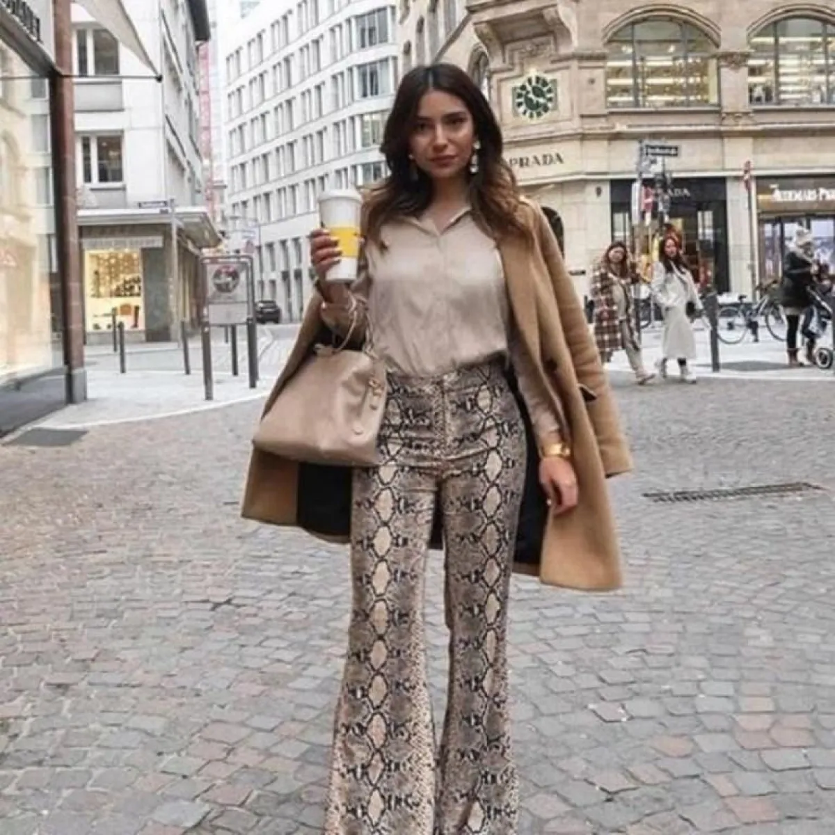 هل فكرت في تنسيق بنطلون بنقشة جلد الثعبان بستايل الطبقات، أي تنسقي قميص باللون الأبيض مع بلوفر فضفاض باللون البيج على سبيل المثال والحذاء اختاري بلون زاهي.