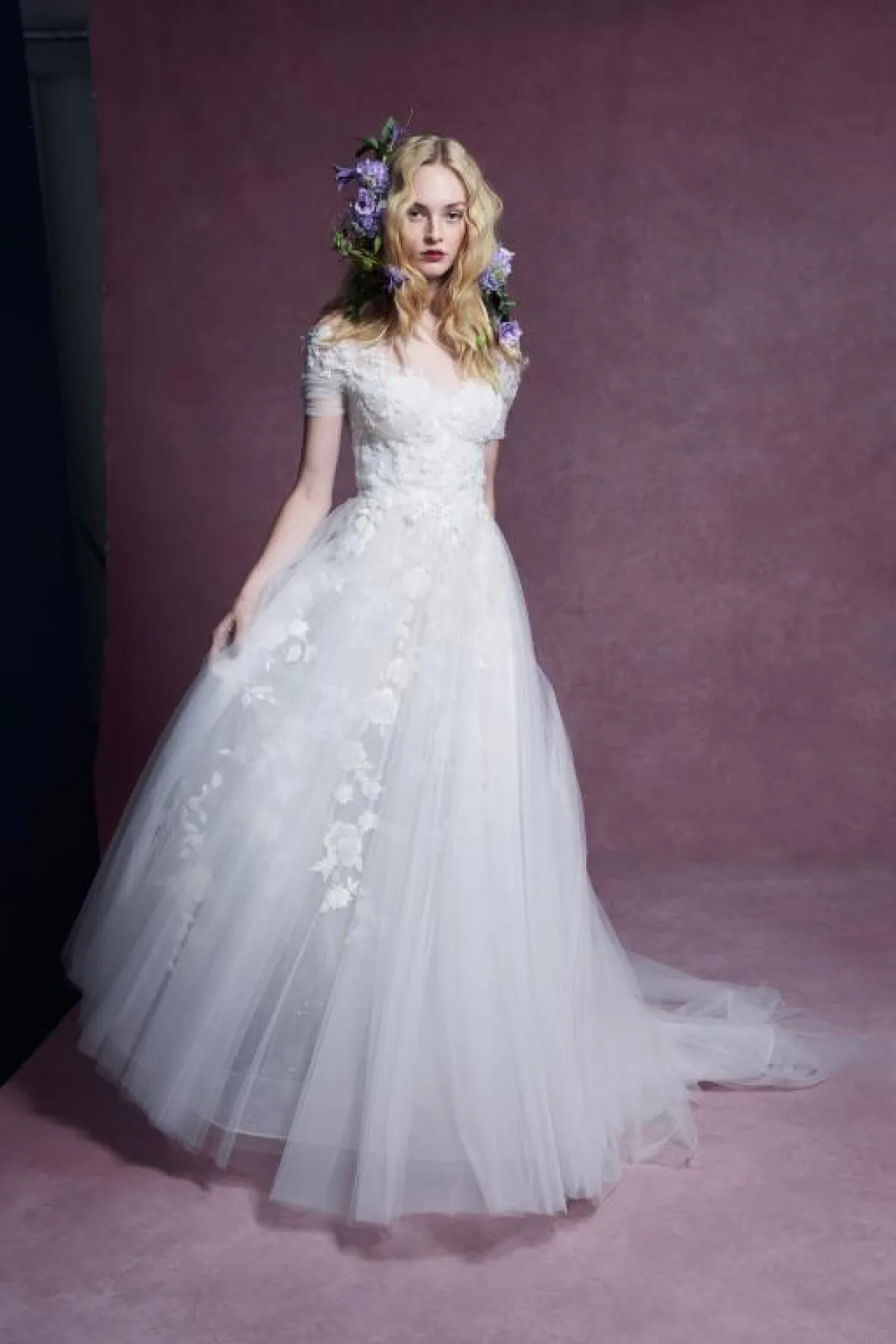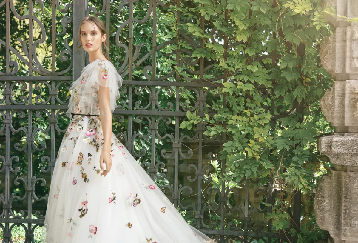 الورود الأنيقة لم تعد مرتبطة بموسم الربيع فقط، بل أبدعتها دار أزياء Monique Lhuillier كهذا الفستان المنفوش من التول، مع ذيل طويل وتطريزات الورود الملونة تمنح الصبيّة اطلالة شبابية كلها حيوية.