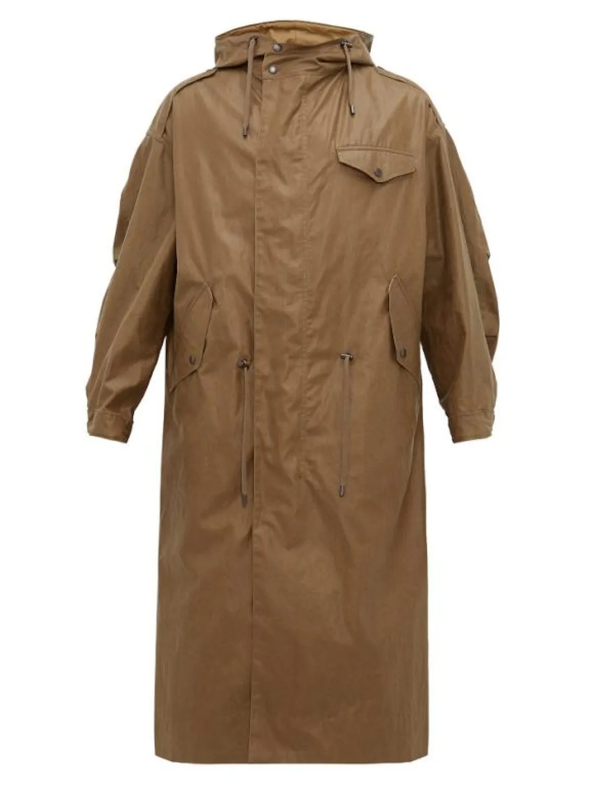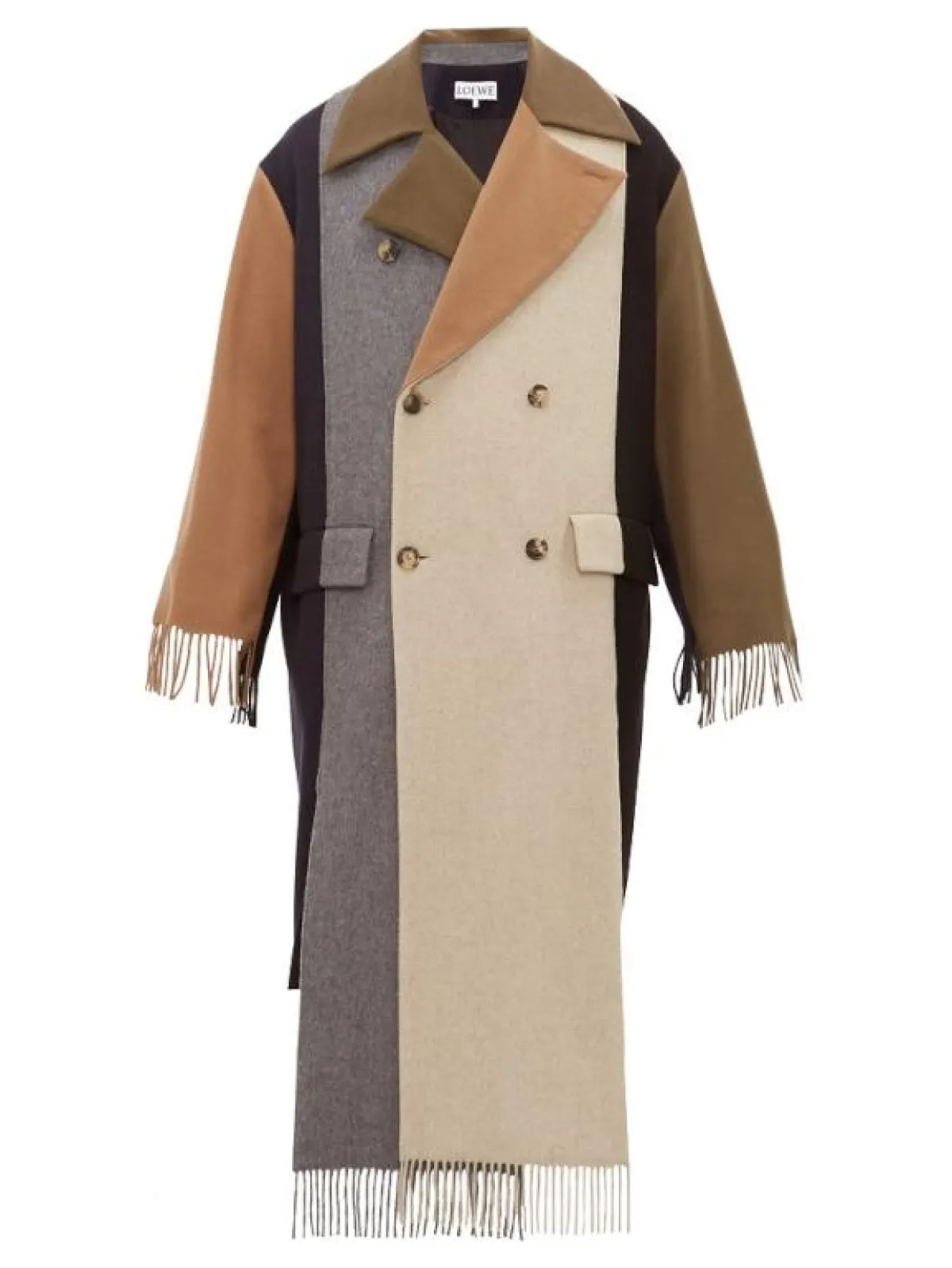 أما دار Loewe فقد استطاعت أن تدمج المعطف التقليدي مع القليل من الحداثة، حيث قدمت معطفاً تميز بأقمشته ذات الالوان المختلفة، مثل البيج، الرمادي، الأسود والأخضر المائل إلى الزيتي، وأضافت الشراشيب على الأكمام تميزاً فريداً.