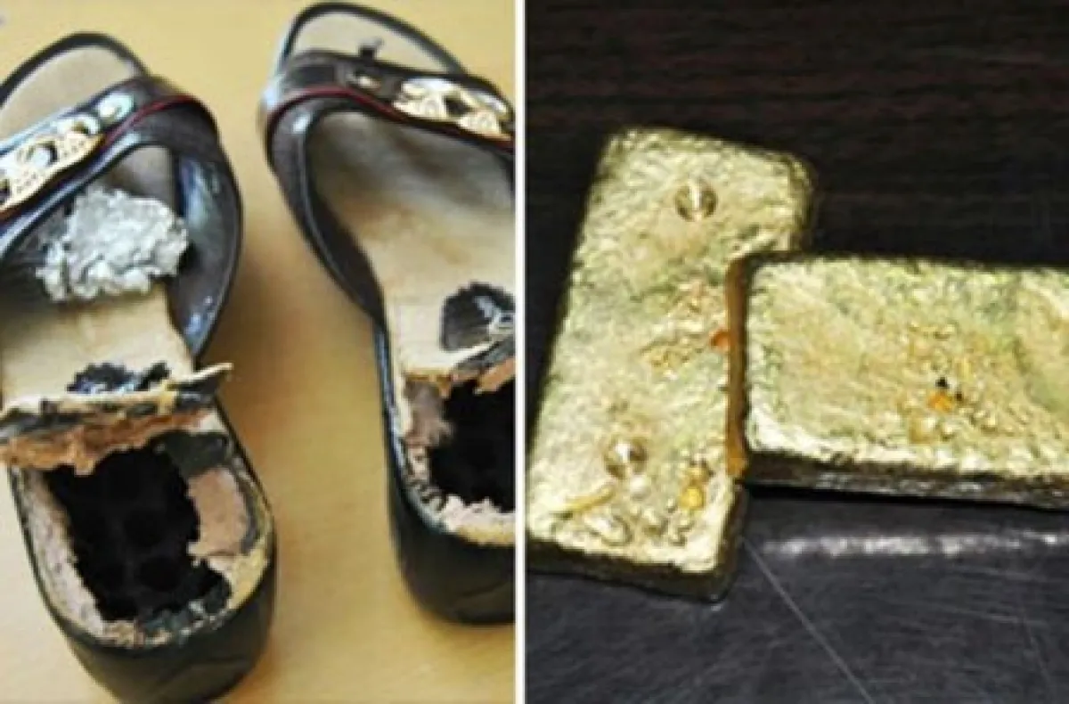 وأضافت : بعد فحصها بجهاز الكشف عن المعادن، تبيّن أنها تخفي في حذائها 8 سبائك من الذهب يبلغ وزنها حوالى 1.9 كيلوغرام.