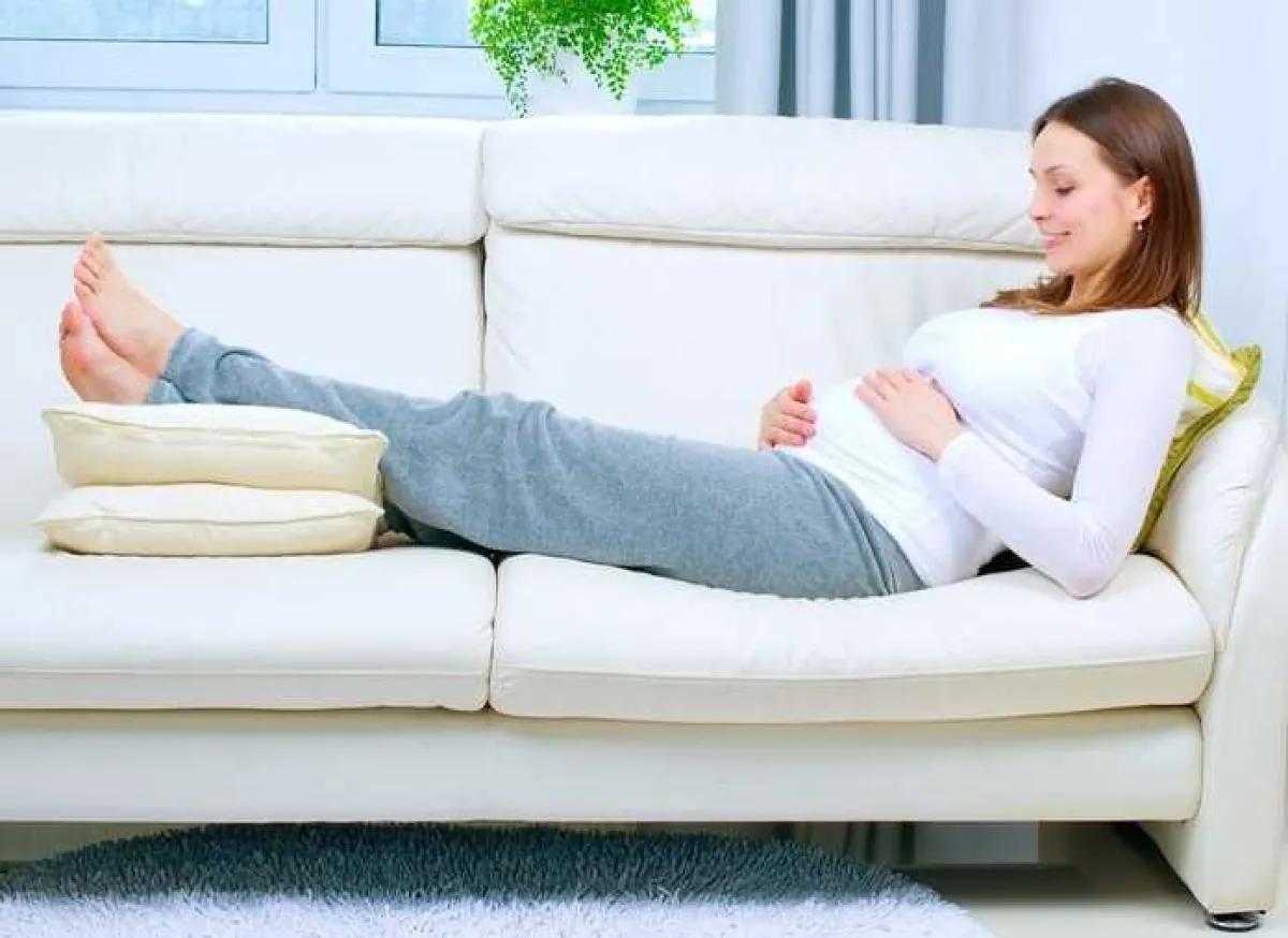 - يجب أن تستلقي الحامل على السرير في النهار بعد كل فترة وقوف تزيد عن النصف ساعة، وتكون بوضع مرتفع للجزء السفلي من جسمها بحيث يكون مشط القدم أعلى من مستوى الرأس، ويمكن في هذه الحالة استخدام الوسائد أو مقعد طري.