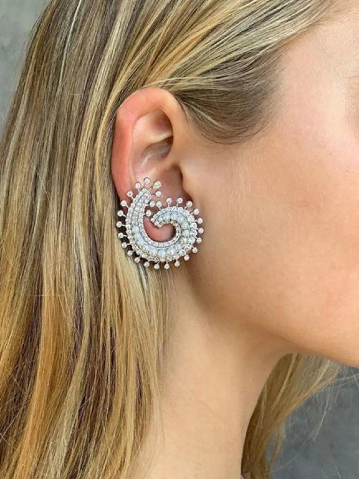 تتمتع الأقراط كبيرة الحجم بقوة كبيرة في البقاء، خاصة عندما يتعلق الأمر بأزياء العروس، وذلك لأنها تلقي الضوء على الوجه ، مما يبرز ملامح العروس بأناقة ساحرة.