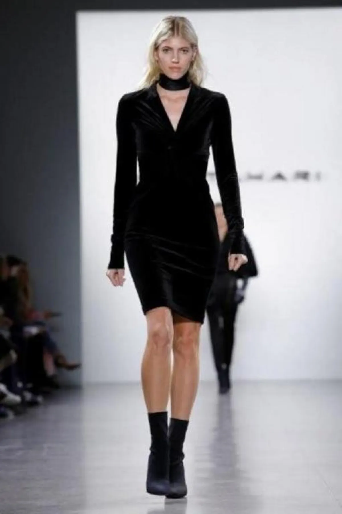 بالنظر إلى مجموعات الأزياء الجاهزة خريف 2019 سنلاحظ هيمنة الفساتين المخملية القصيرة على المشهد حيث تألقت بها عارضات إيلي تهاري Elie Tahari ودينيس باسو Dennis Basso و MSGM، اعتمديها لتزيدي من طول قامتك ونسقيها مع حذاء مدبب من الأمام بكعب رفيع.
