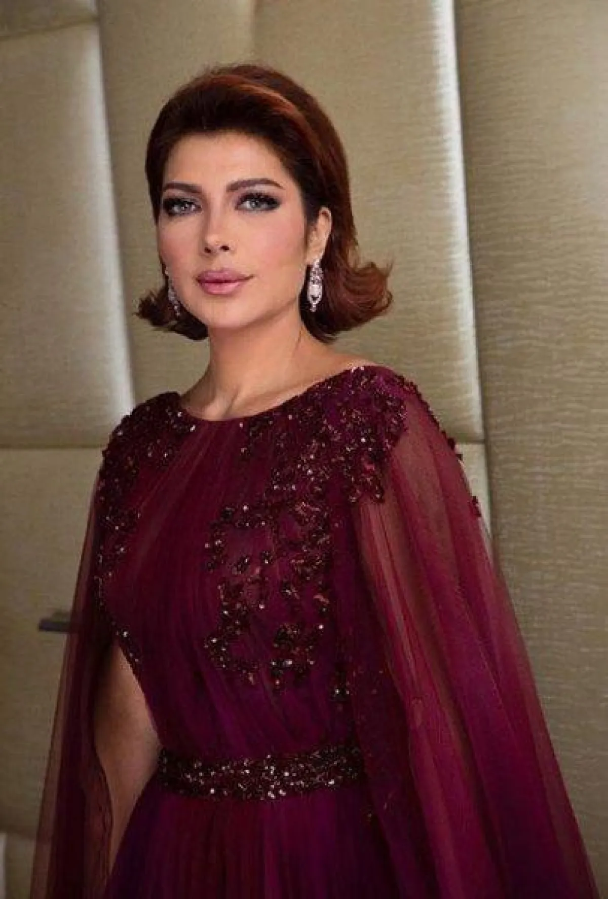 ومؤخراً اختارت أصالة فستان برغندي بصيحة الكاب الراقية ومرصع بتطريزات برّاقة على الصدر.