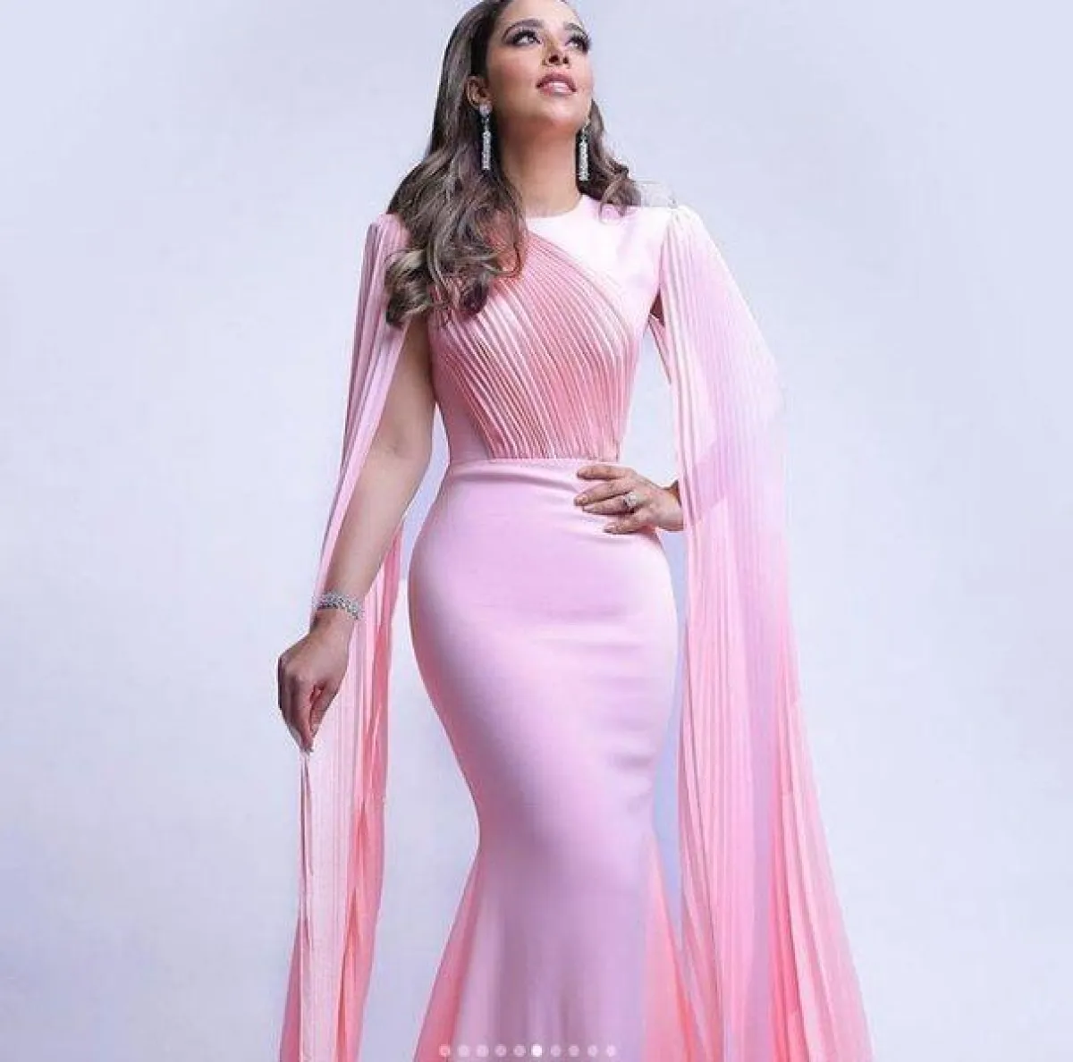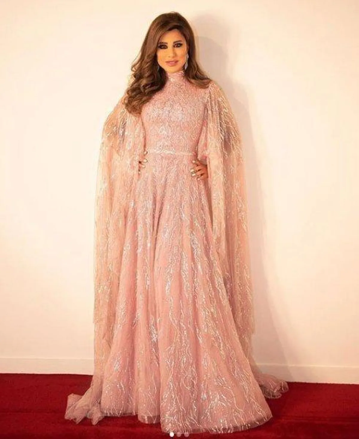 ظهرت نجوى كرم مؤخراً بفستان أنثوي جذاب بصيحة الكاب، وهو باللون الوردي ومرصع بتطريزات برّاقة تغطيه بالكامل.