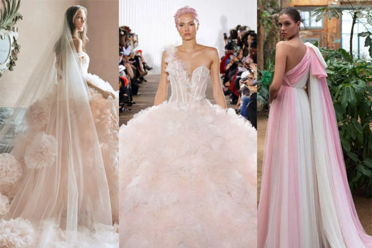 كما أن اللون الوردي من أحدث صيحات الموضة الرائجة في فساتين الخطوبة والزفاف.