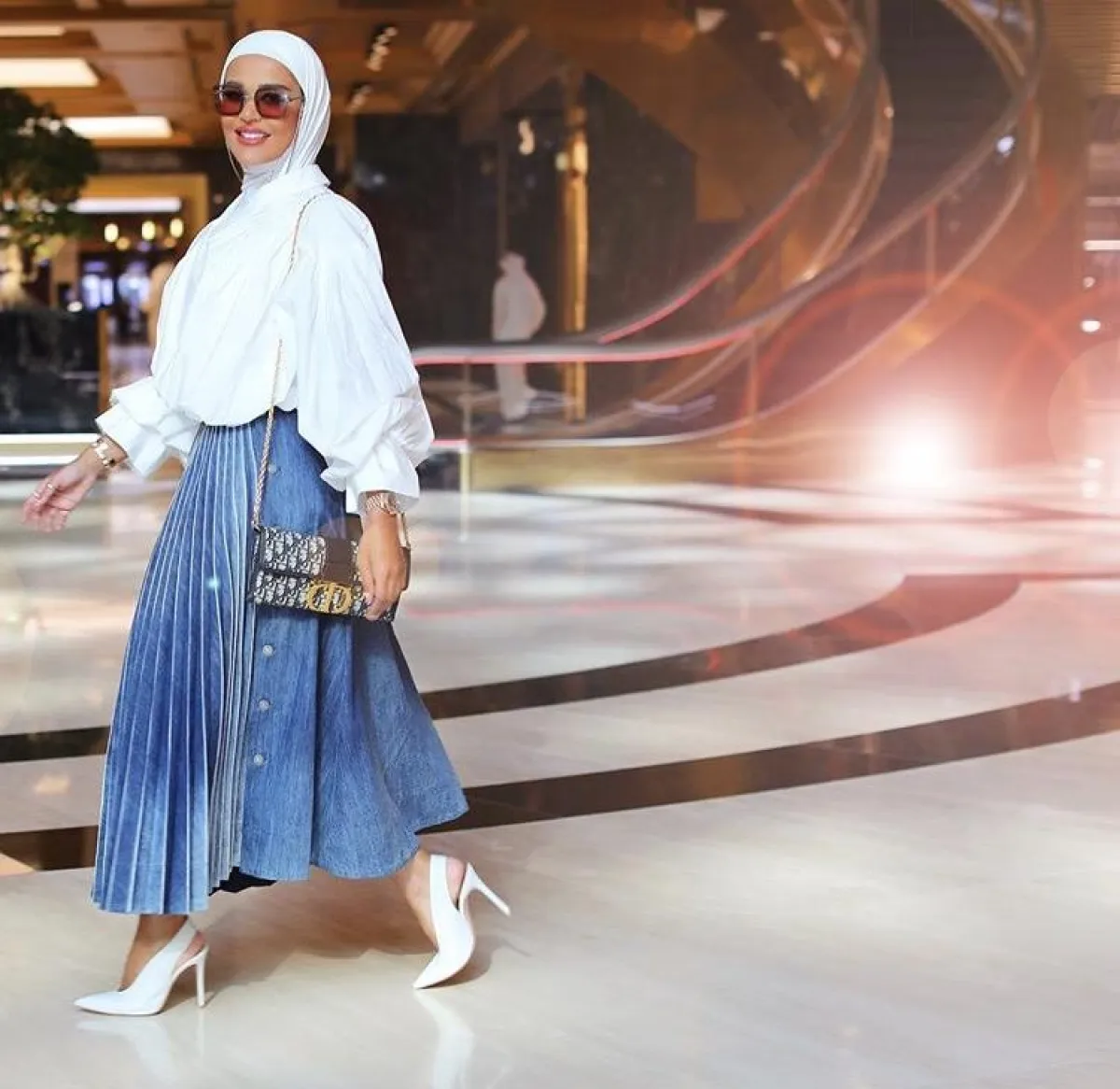 بطريقة عصرية اختارت المدونة مرمر محمد، نظارة شمسية باللون الأصفر، إحدى الدرجات التي برزت كثيرًا العام الماضي ومستمرة لهذه السنة، نسقتها مع فستان باللون الأصفر الفاقع، لاطلالة مستوحاة من أجواء الثمانينيات، وبالطبع لم تغيّر حجابها باللون الأبيض الذي يُعتبر قطعة ثابتة بمظهرها.