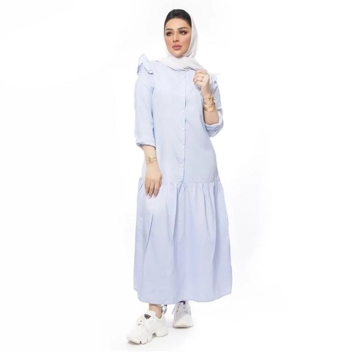 العبايات باللون الأزرق الزهري مع النقوشات