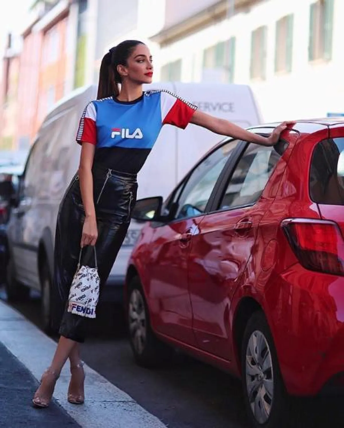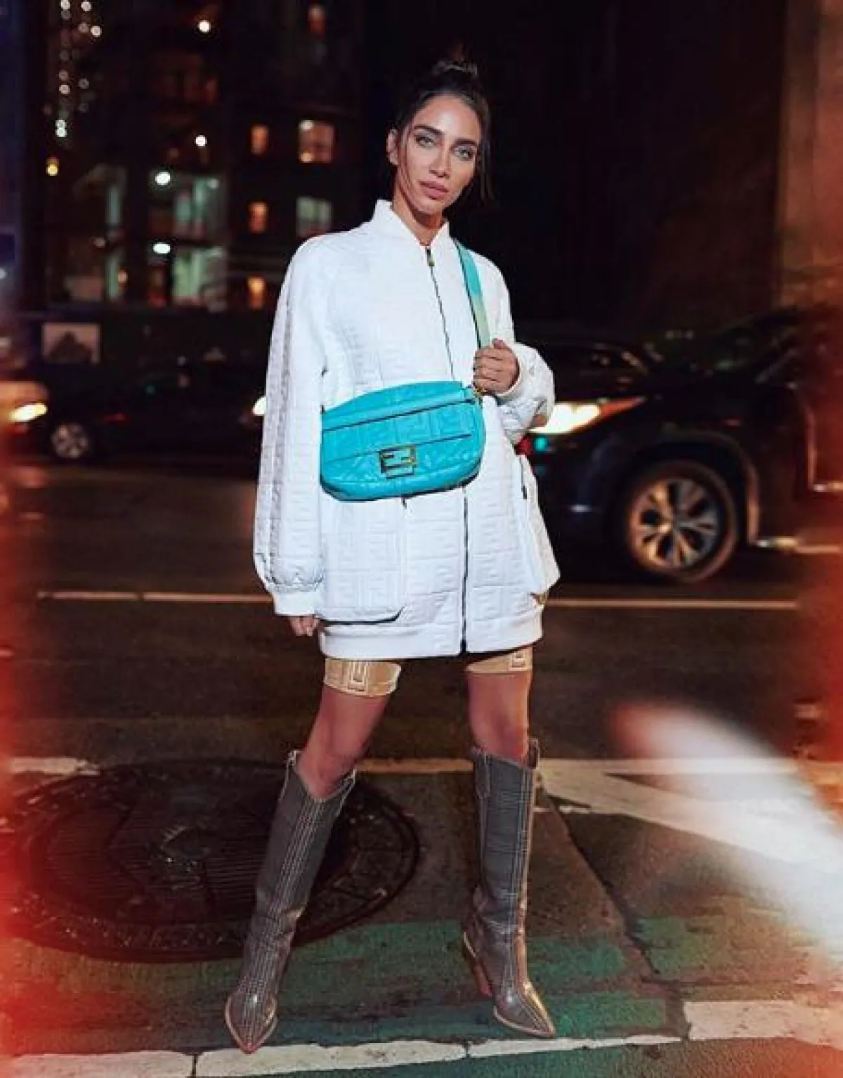 الجزمة العالية إحدى أبرز صيحات الموضة الرائجة لموسم شتاء 2020 وقد شاهدناها ضمن الكثير من مجموعات الدور العالمية، وهذه الجزمة مثالية للنساء طويلات القامة ولا سيّما إن قمن بتنسيقها بأسلوب مشابه للأسلوب الذي اعتمدته جيسيكا قهواتي، مع شورت قصير أسود وجاكيت بليزر باللون الزيتي بصفي أزرار، وأكملت اللوك بحقيبة ظهر من الجلد من فندي Fendi.