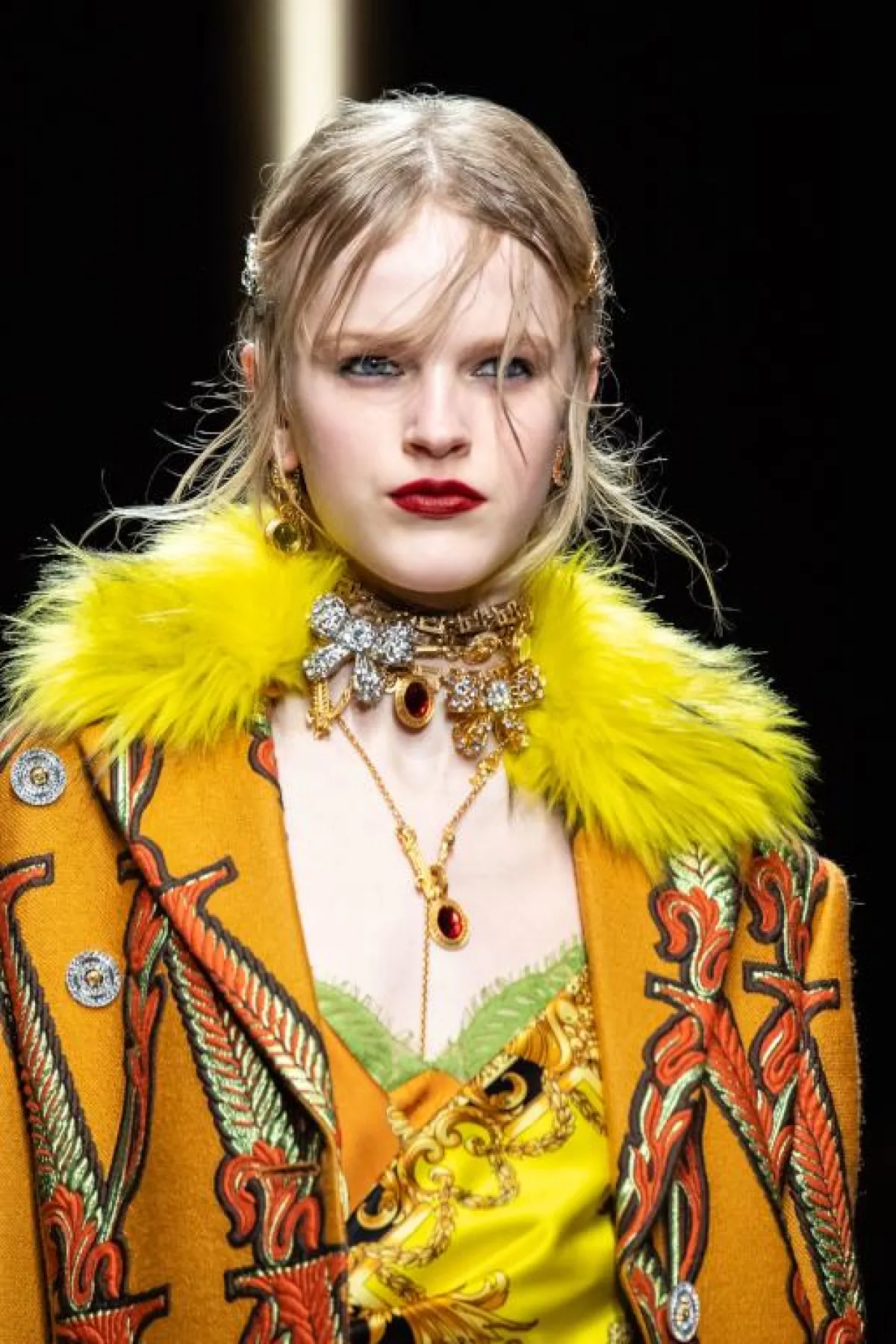 تعتبر من أبرز إتجاهات 2020، لفتتنا التصاميم التي تزينت بها عارضات لويزا بيكاريا Luisa Beccaria وفيرساتشي Versace، تلك الأخيرة ننصحك بتنسيقها مع فستان V Neck لتثري اطلالتك المسائية.