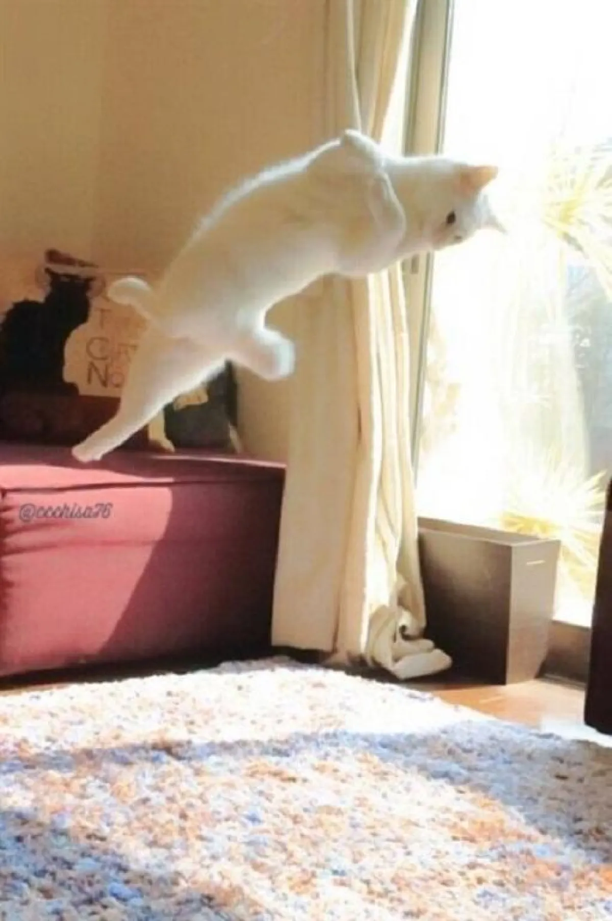 كما يظهر القطة وهي تقفز بسرعة من مكانها، وركضت تجاه الطفل وأمسكته من ملابسه، مانعة إياه من السقوط والتعرض لإصابات مميتة.