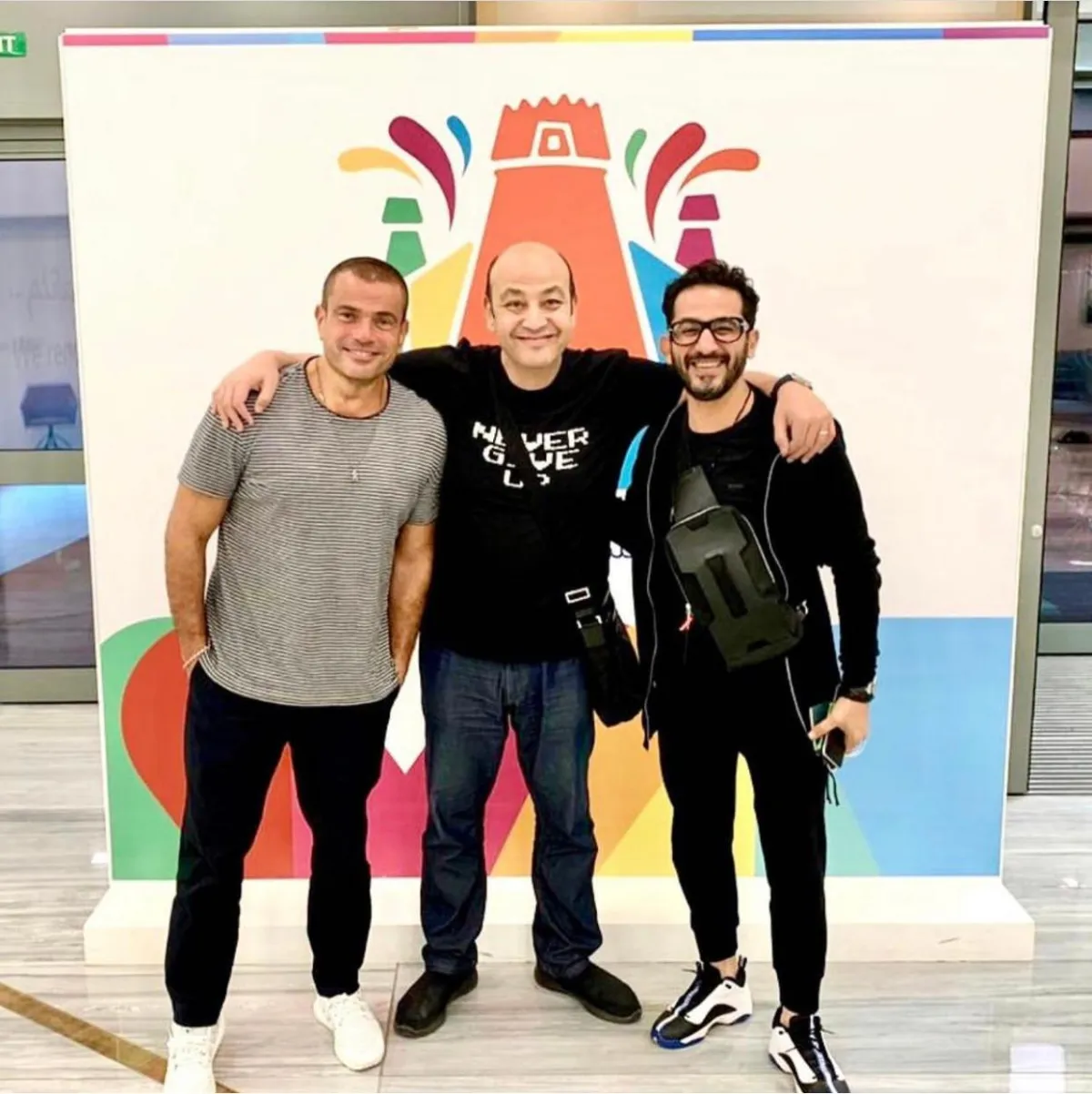 ظهر الفنان عمرو دياب بجانب مصطفي البنا، الذي داعبه قائلاً: إنه الهرم الرابع و"نمبر 1" الحقيقي، العالمي، وظل مصطفي يداعب النجم عمرو دياب خلال الفيديو حول صحته ولياقته البدنية على المسرح ليرد عليه الأخير "بس بقه".