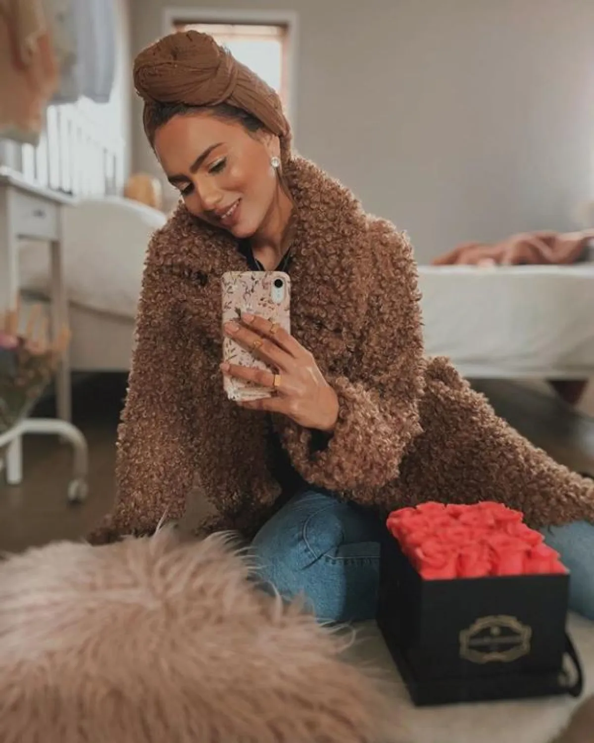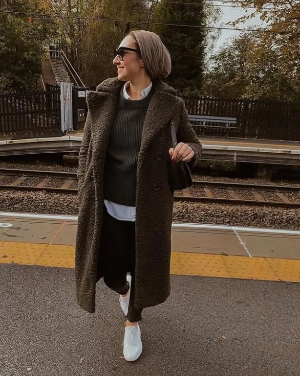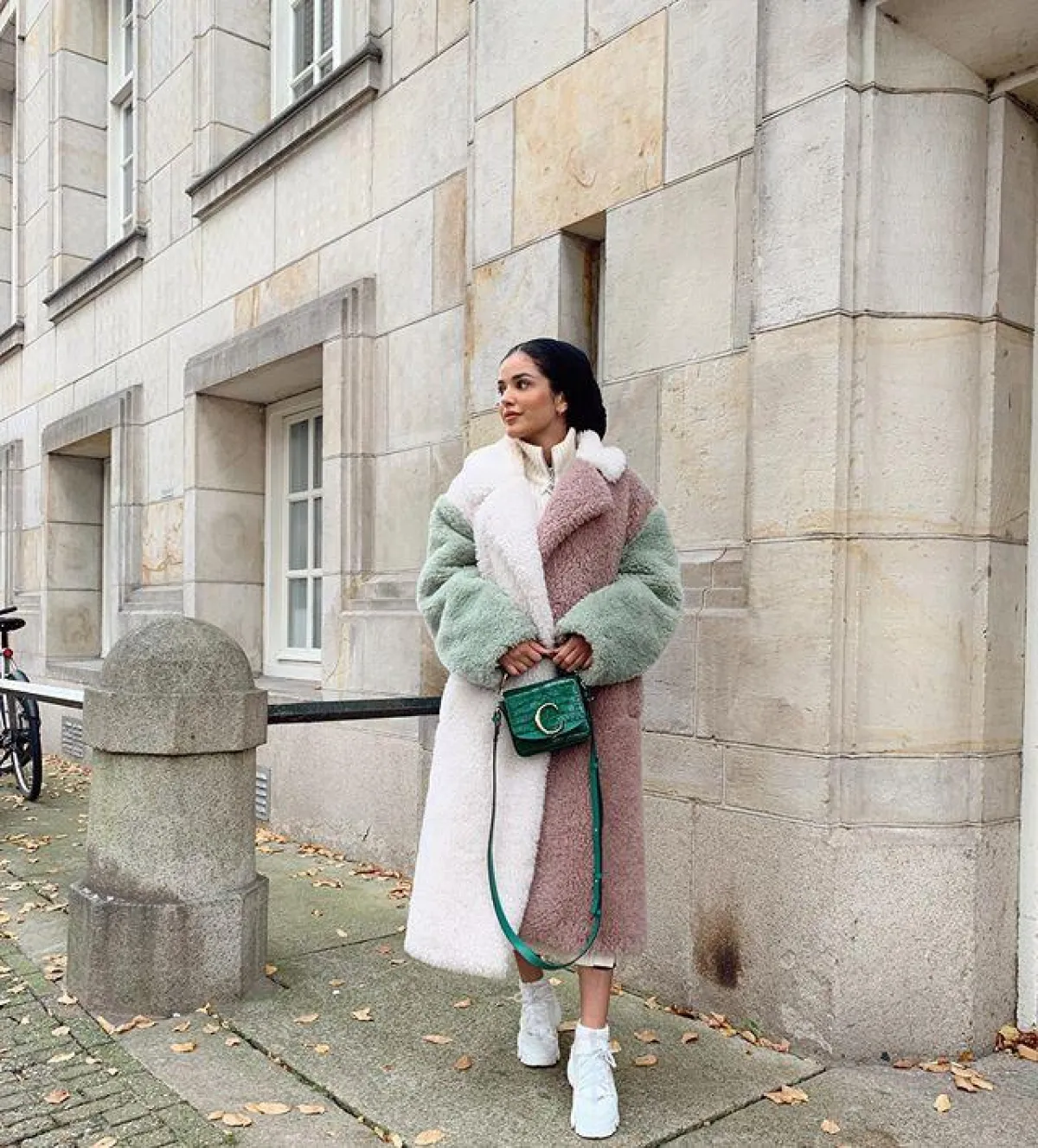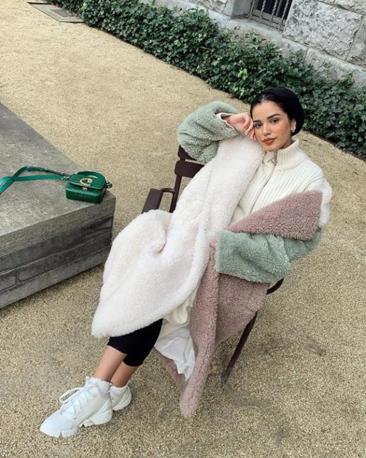 لفتنا هذا الجاكيت الطويل نسبيًا من الفاشينيستا ظهيرة، اختارته بألوان البيج المخملية، وهو من الدرجات الرائجة بقوة هذا العام، وأيضًا معاطف فرو الخروف من الصيحات، التي ظهرت العام الماضي، وما زالت مستمرة معنا لهذا الموسم.