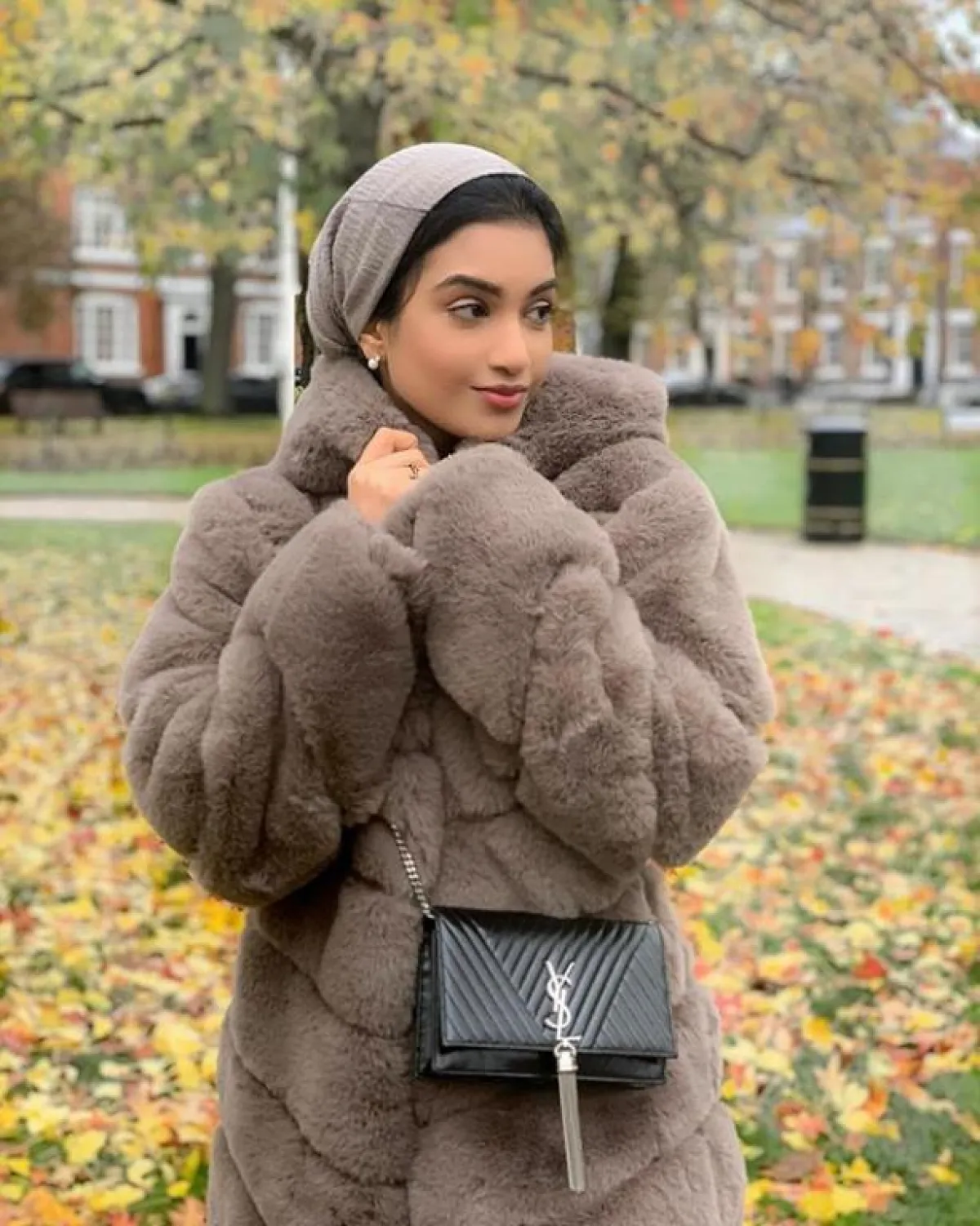 المعطف الفرو الرمادي البني من الفاشينيستا هاجر