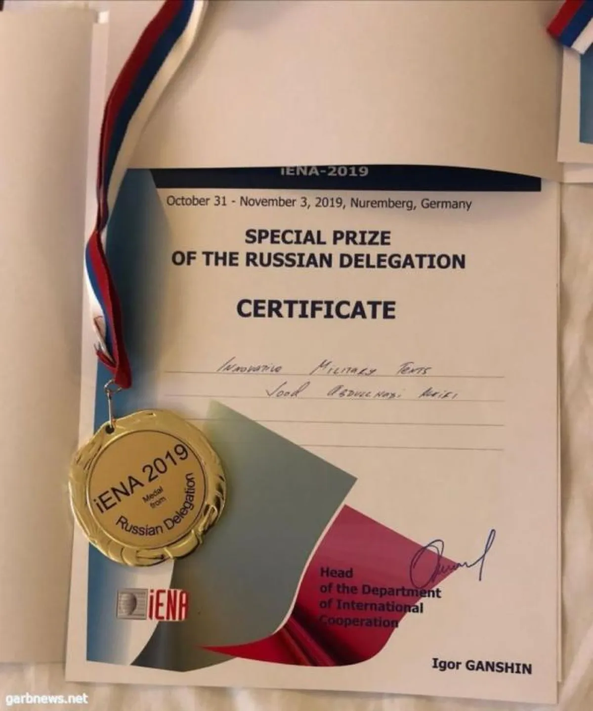 حصدت الطالبة جود عبدالهادي السلماني، من مدارس "مواهب الوطن الأهلية" وممثلة الإدارة العامة للتعليم في منطقة عسير بالسعودية، الميدالية الذهبية في معرض "أينا" الألماني للاختراعات عن اختراعها "خيمة تمويه عسكرية"، متفوقةً على 800 مخترع ومخترعة من 30 دولة.