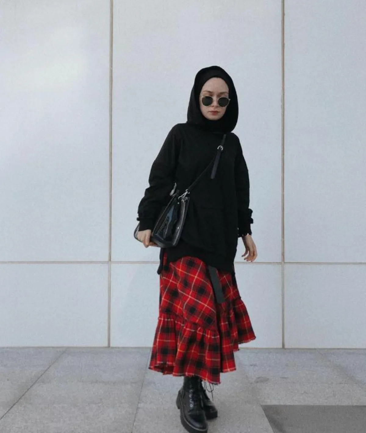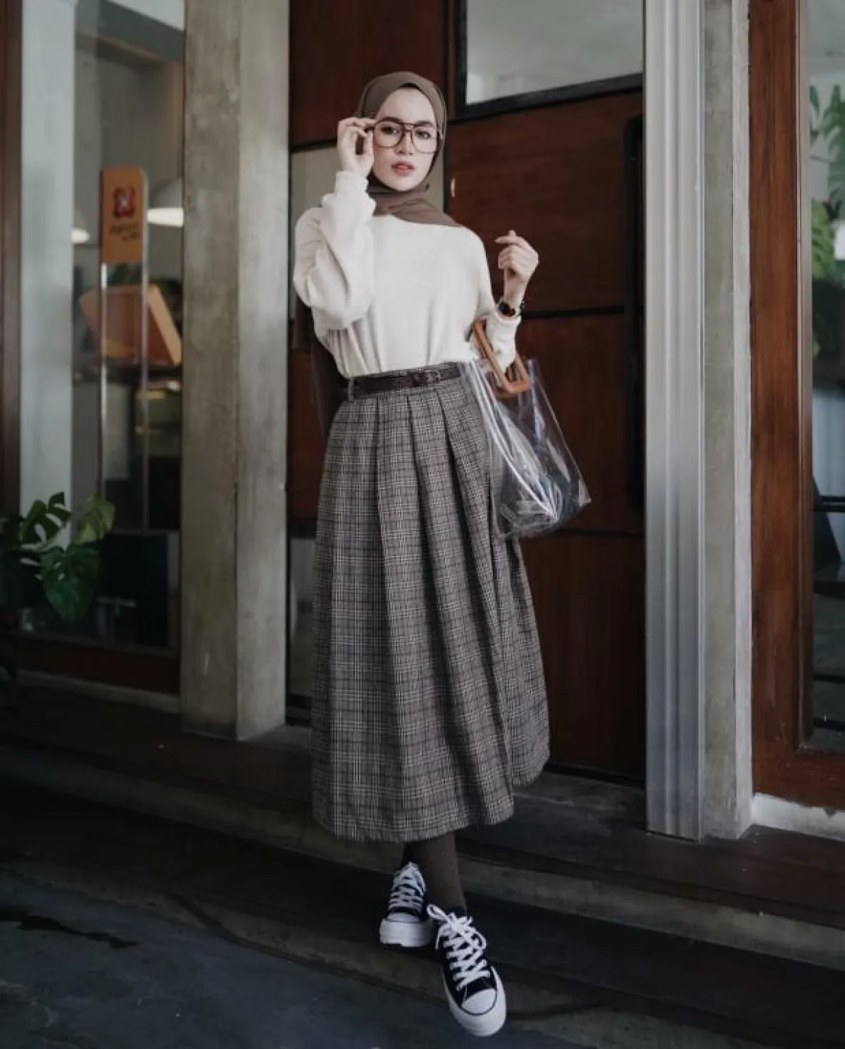 تُعتبر موضة طبعات المربعات الأبرز في موسم الشتاء، اعتمدي تنورة بهذا النمط ونسقيها إما مع سويت شيرت أسود طويل وطرحة واكسسوارات سوداء، أو مع كنزة صوف بيضاء خفيفة أطويها بداخلها وتمّمي أناقتكِ بحذاء رياضي مريح وحقيبة Shopper شفافة.
