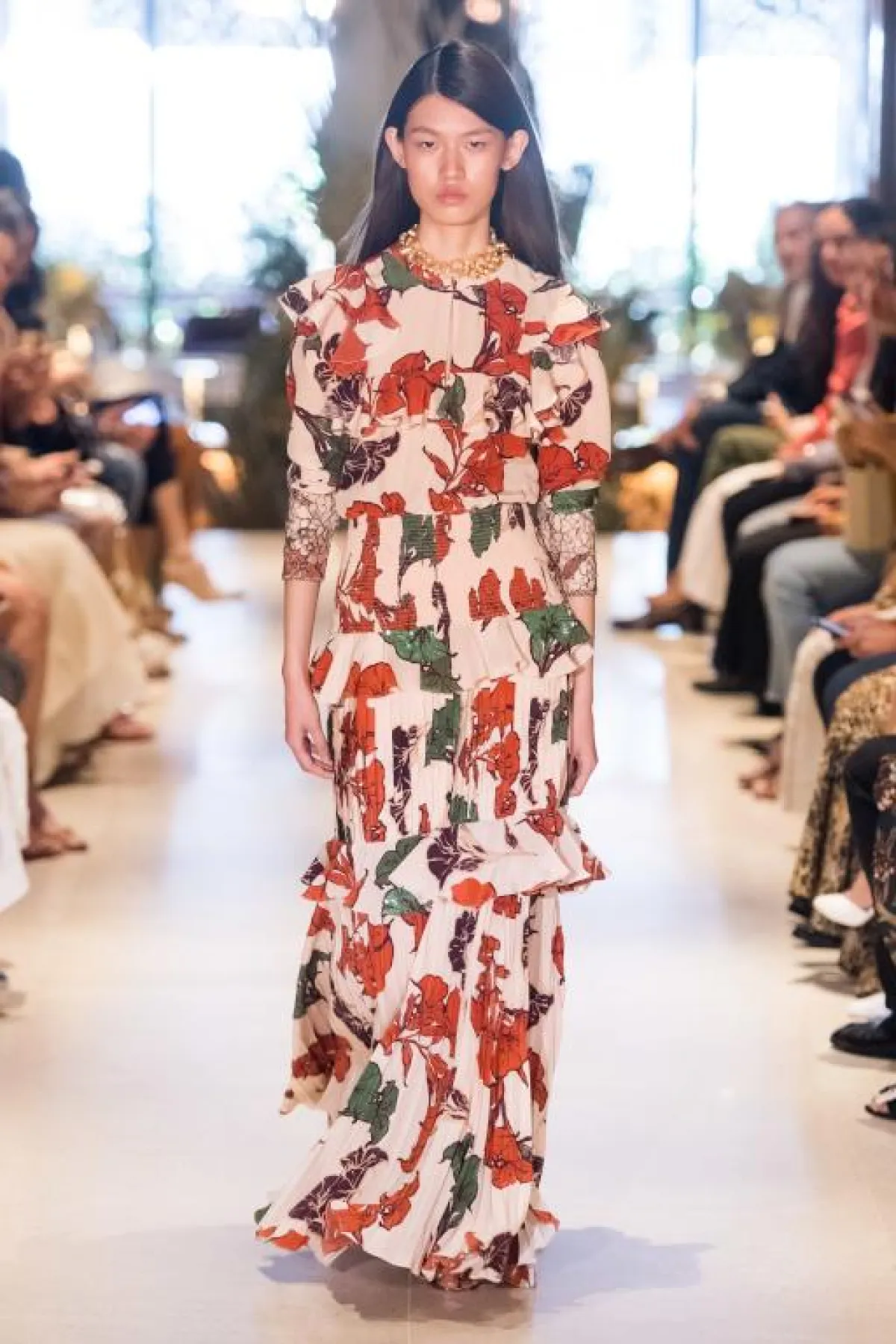 ركز عدد من الماركات على الفساتين المطبعة بالورود، لا سيما التصميمات المؤلفة من طبقات كما في مجموعات برابال غورونغPrabal Gurung ولورا غارسياLaura Garciaوقدمتها بأطوال منوعة يمكنكِ تنسيق القطع متوسطة الطول، مع بوط طويل لتحصلي على لوك محتشم يناسب حجابكِ، ونرشح هذا الستايل للنحيفات الطويلات.
