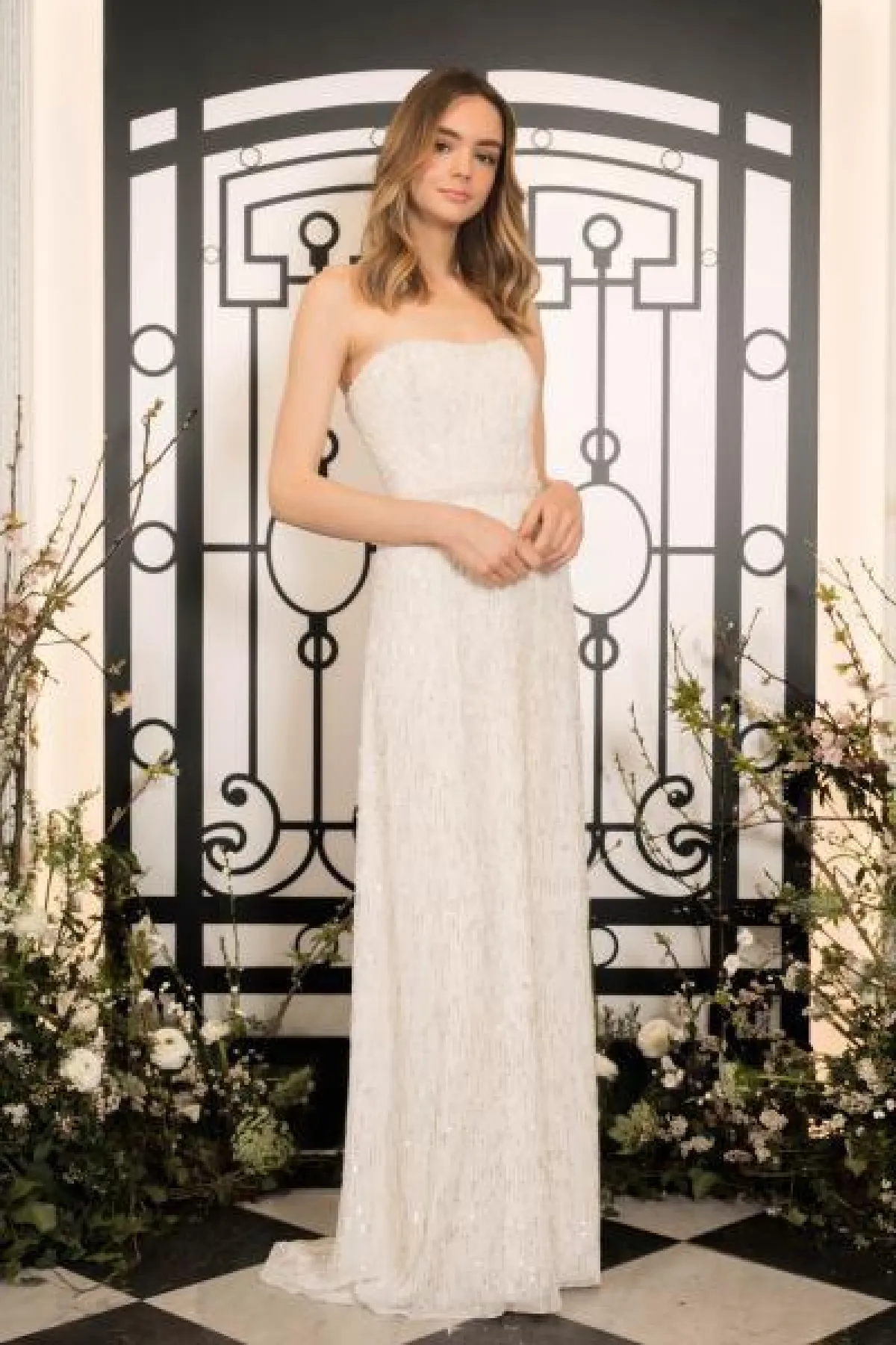 قدمت المصممة المبدعة موديلات رقيقة ورومانسية للعروس، مثل الفستان الحمّالات بالقبّة الـV، والفستان الـStrapless المزين بتطريزات ناعمة.