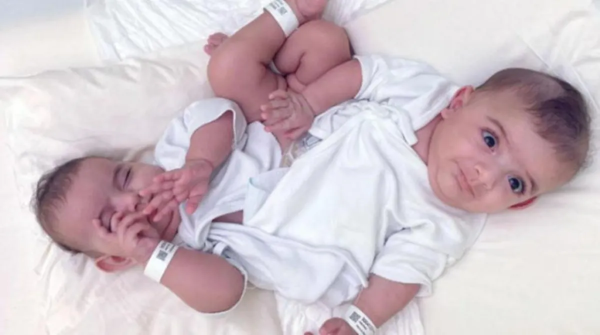 وأوضح الدكتور الربيعة، في تصريح إعلامي لوكالة الأنباء السعودية، أن التوأم يلتصق في أسفل البطن والحوض، ولكلٍّ منهما طرف سفلي واحد، ويشتركان في طرف سفلي ثالث مشوَّه، كما يشتركان في الجهاز البولي والتناسلي الداخلي، ولهما عضو ذكري تناسلي بولي خارجي واحد، ويشتركان أيضاً في آخر الأمعاء الدقيقة والأمعاء الغليظة وفتحة الشرج وعظام الحوض.