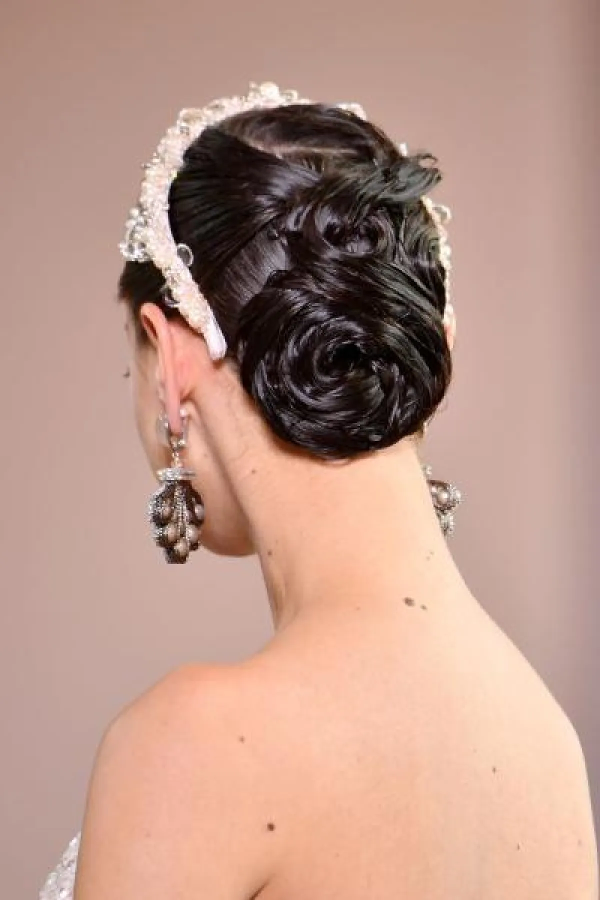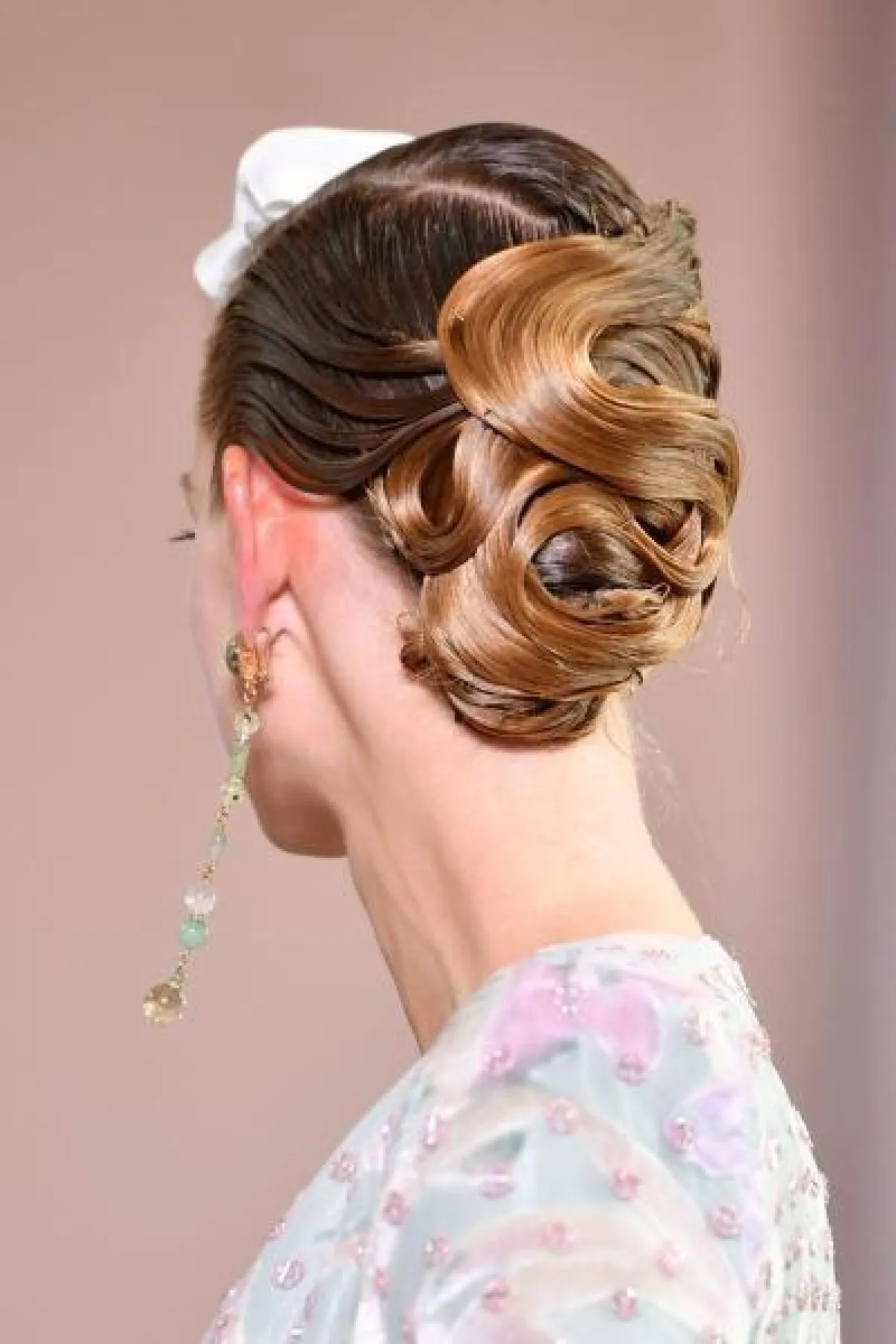 تألّقي في يوم زفافك بتسريحات الكعكة، المنخفضة المتوسّطة والمنفّذة بأسلوب هندسيّ كما جاءت في عروض Armani Prive ، Ralph & Russo ،Christophe Josse، أيضاً Dior ، Elie Saab وValentino . وظّفي الضفائر الرفيعة، الفرق الوسطيّ أو الجانبيّ الناعم والمشدود إلى الخلف بشكل مثبت، نمّقي باللّؤلؤ والشرائط الرفيعة المزينة بالورود الناعمة والخرز المتداخل حول تاج الرأس والتي تتخلّل الكعكة وتسريحات الشعر للمسة عصريّة ولافتة في هذا اليوم الكبير والمميز.