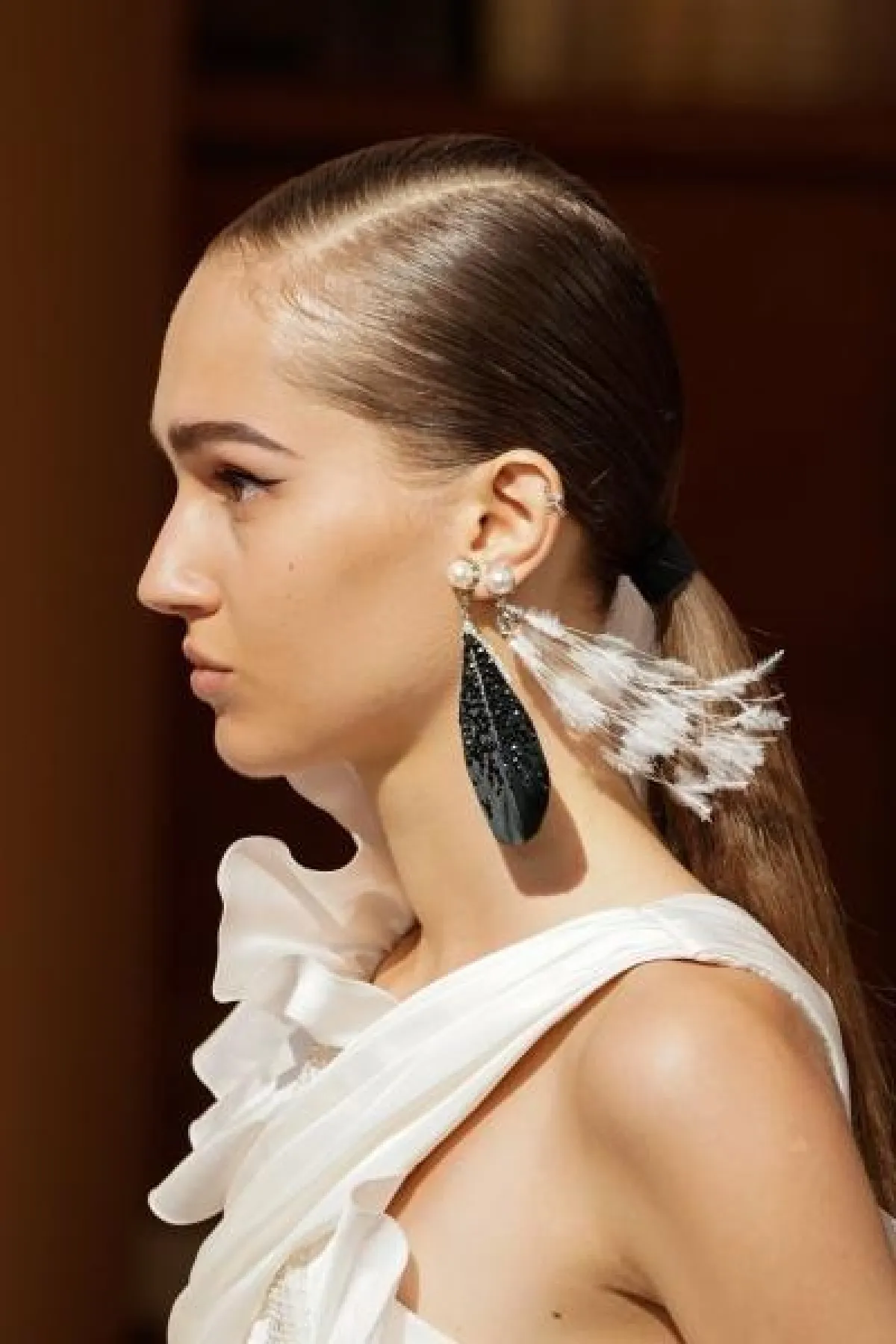 تألّقي بتسريحات الشعر المنسدل الناعم والمتدلّي على الظهر مع ترك بعض الخصلات تتطاير على الكتفين بأسلوب عصريّ، كما في عروض Ziad Nakad أو اسحبيها إلى الخلف بطريقة تكشف عن كامل ملامح الوجه، كما في عروض Chanel مع أكسسوارات بارزة ولافتة.