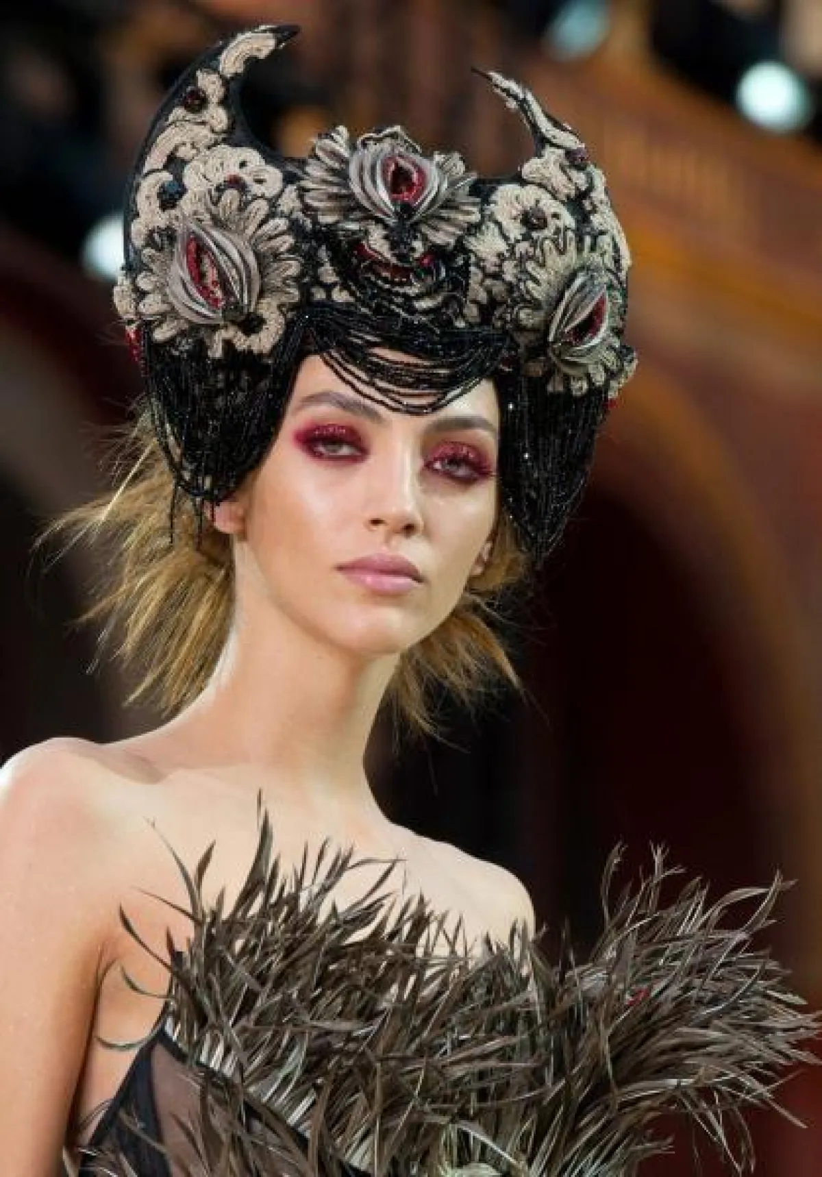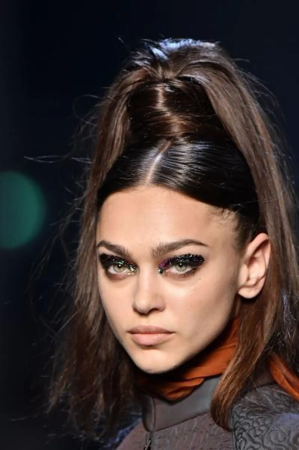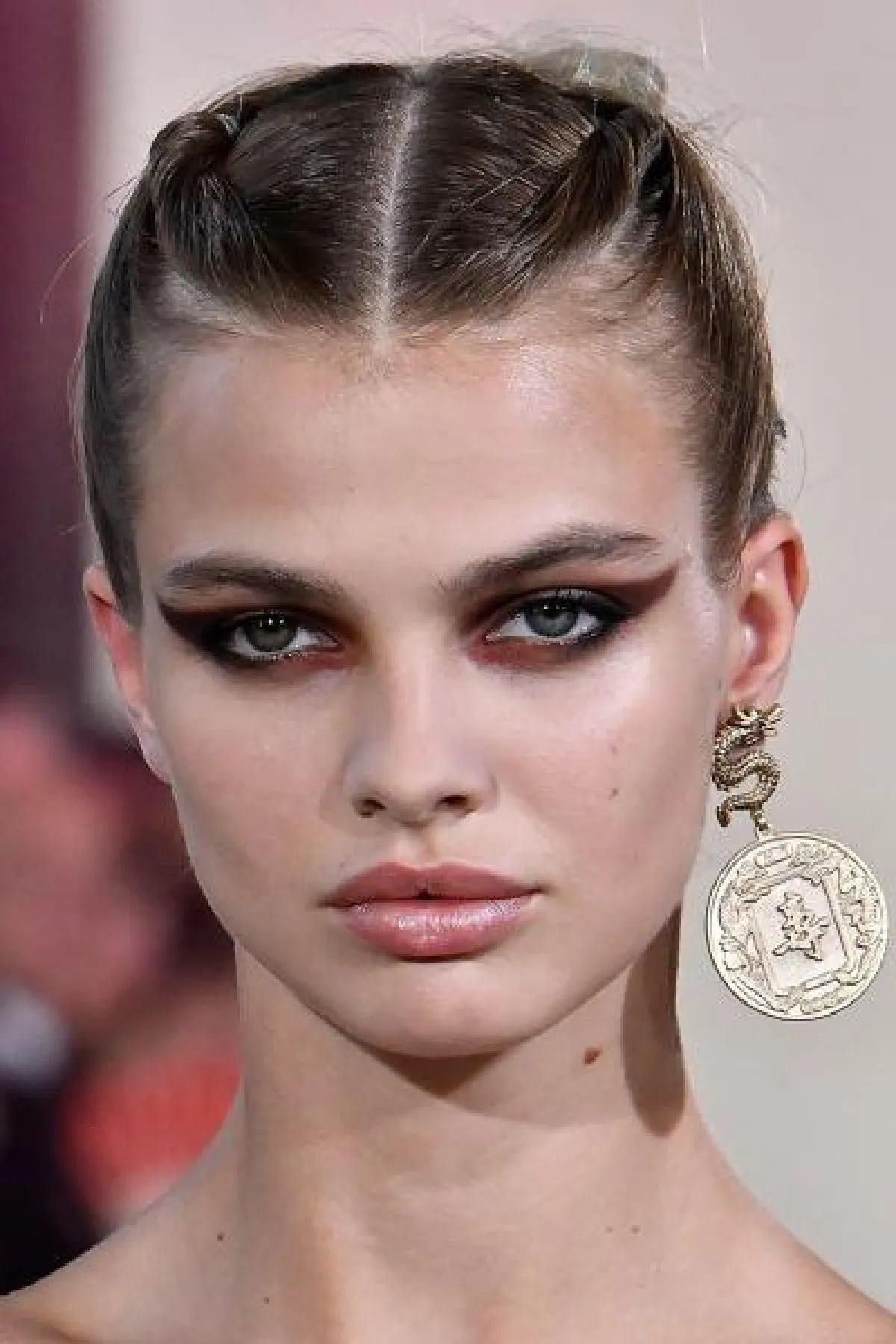 اعتمدي مكياج العيون السموكي مع خطوط الآيلاينر المجنّحة والظلال الداكنة والبرّاقة لنظرات ساحرة، كما اعتمدتها ديور Dior، جون بول غولتييه Jean Paul Gaultier، إيلي صعب Elie Saab وفالنتينو Valentino. ولشفتيكِ، اختاري الورديّ البرّاق أو البيج الفاتح التي تتناغم بشدّة مع مكياج العيون الداكن والكثيف.