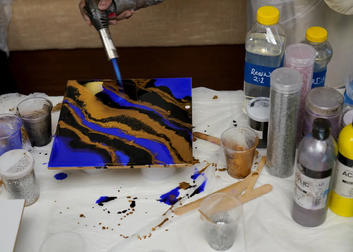عرّف "سوق العَرصة"، أحد أبرز الأسواق الشعبية في "قلب الشارقة"، زواره على تقنيات الرسم بمادة "الريزن/الراتنج"، التي تعد من المواد الحديثة المستخدمة في الرسم والفنون والديكور، وتتميز بلزوجتها وقدرتها على طلاء المواد المختلفة وتغطية سطحها.