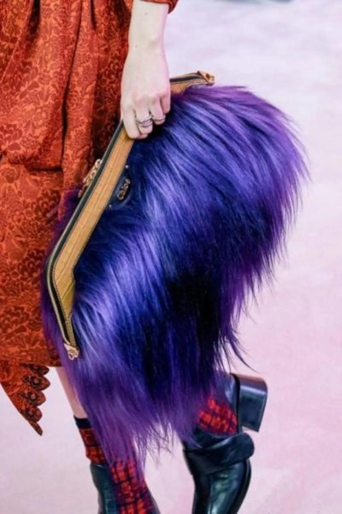 تبقى الحقيبة المغطاة بالفرو الوثير متربعة على عرش الموضة، وأبتكرت ماركة كلوي Chloé شنطة زرقاء بتصميم عملي يناسب حفلات العشاء والكوكتيل وننصحك بتنسيقها مع فستان قصير من دون تطريز.