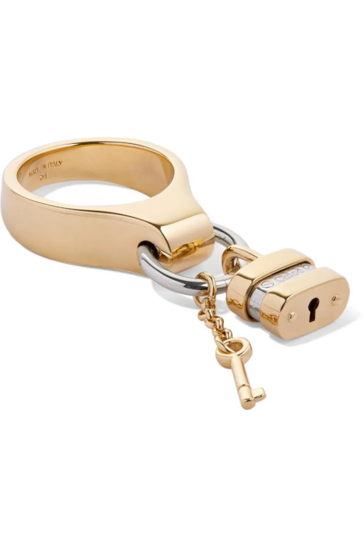 لصاحبات الإطلالة المجنونة والعصرية حصة كبيرة من تصاميم خواتم الذهب الأصفر لشتاء 2020، خاصة لدى دار Chloé، التي أبهرتنا بتصميم خاتم يتدلى منه قفل من الذهب الأصفر مع مفتاح صغير إلى جانبه، ولعلّ هذا الخاتم يتناسب بشكل كبير مع الإطلالات العصرية اليومية أو مع إطلالات العمل.
