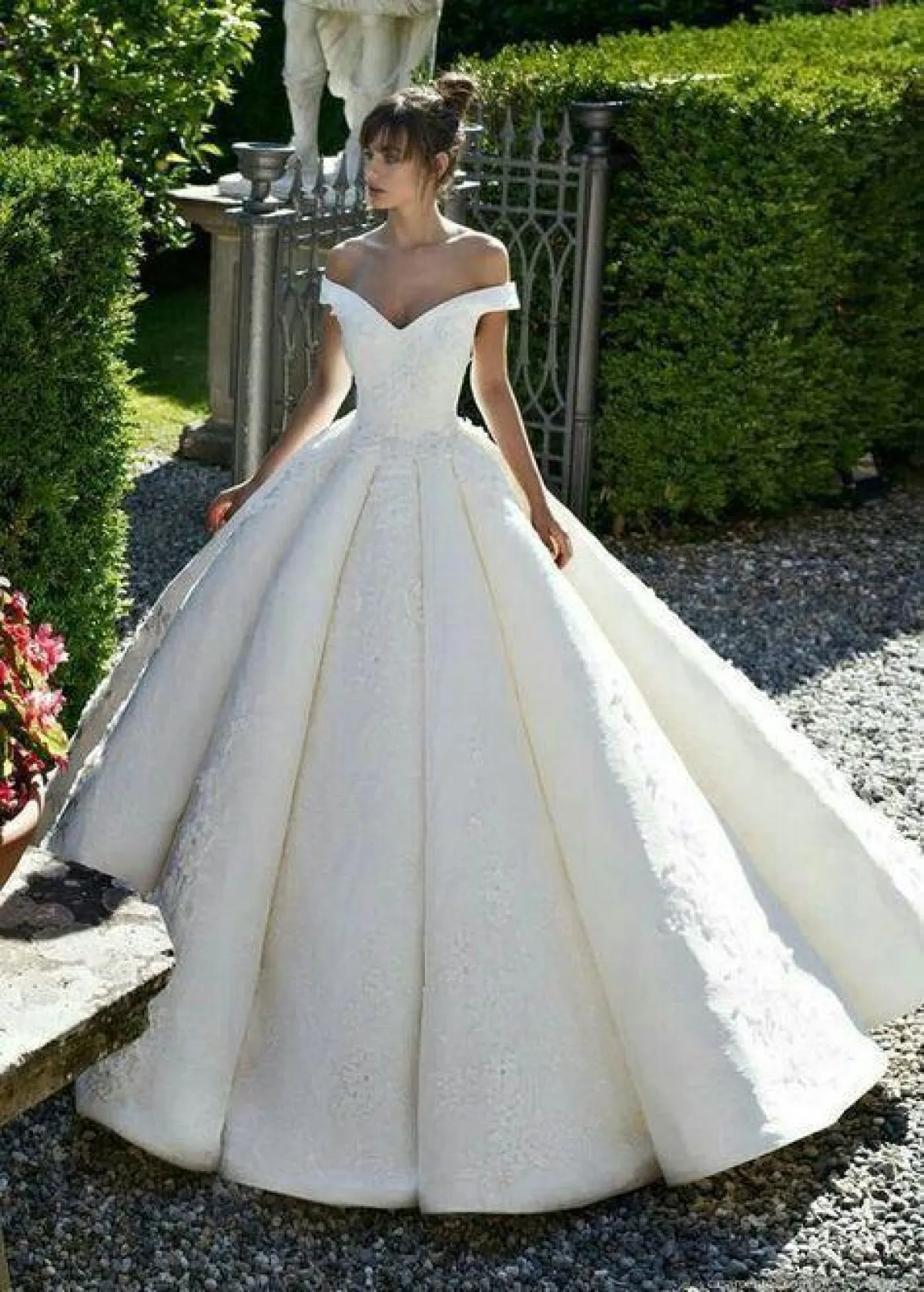 فستان الزفاف المنفوش المطرز بالورود