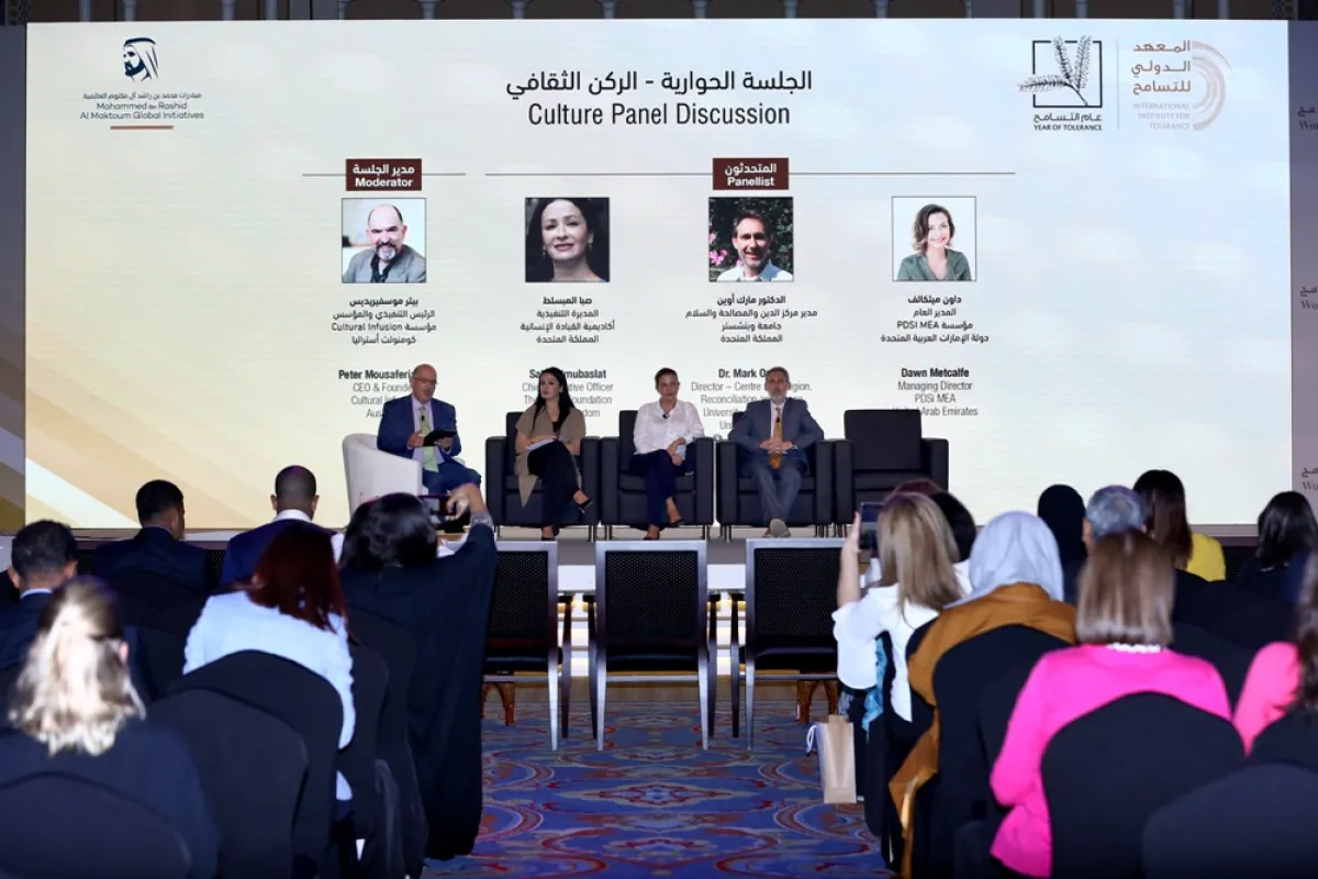 وشخص الدكتور رشيد السامرائي المنسق الجراحي لبرنامج الجراحة التقويمية أطباء بلا حدود، في المملكة الأردنية الهاشمية أهمية التسامح ودوره في احتواء الخلافات، فيما تبحث جلسة العمل محوراً مهما عن الشباب باعتبارهم الدافع الرئيسي للتسامح، ودور الفنون البصرية كوسيلة لترويج السلام، والإمارات العربية المتحدة نموذجاً لاحتضان أكثر من 200 جنسية وثقافة مختلفة.