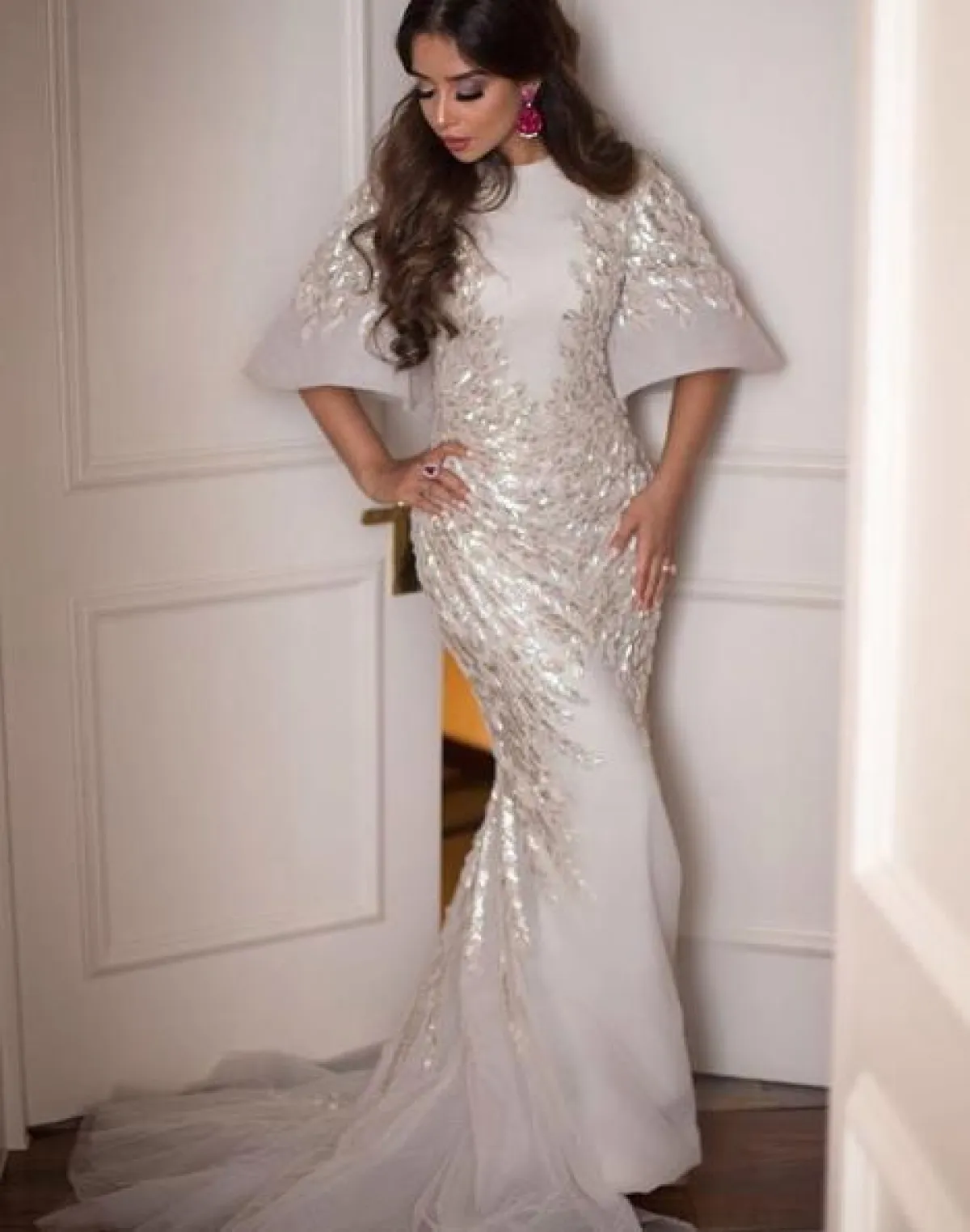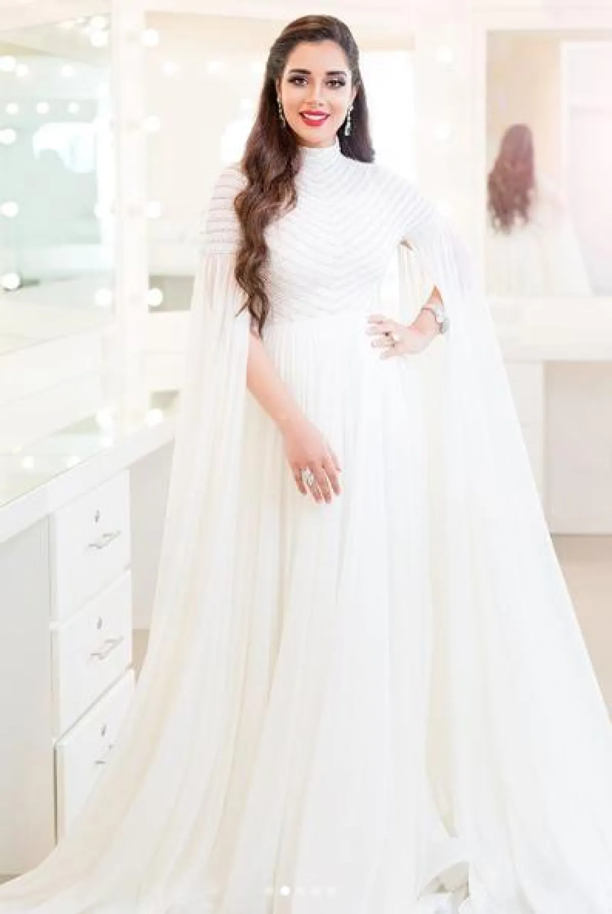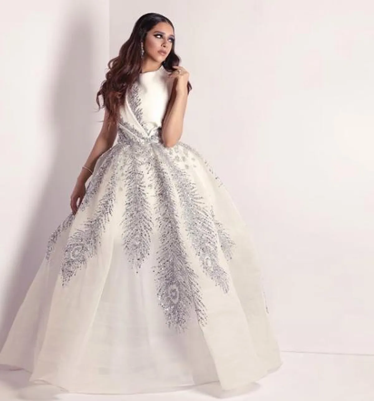 فستان أبيض فاخر اختارته بلقيس فتحي