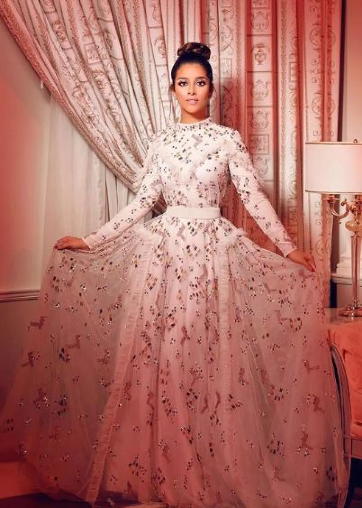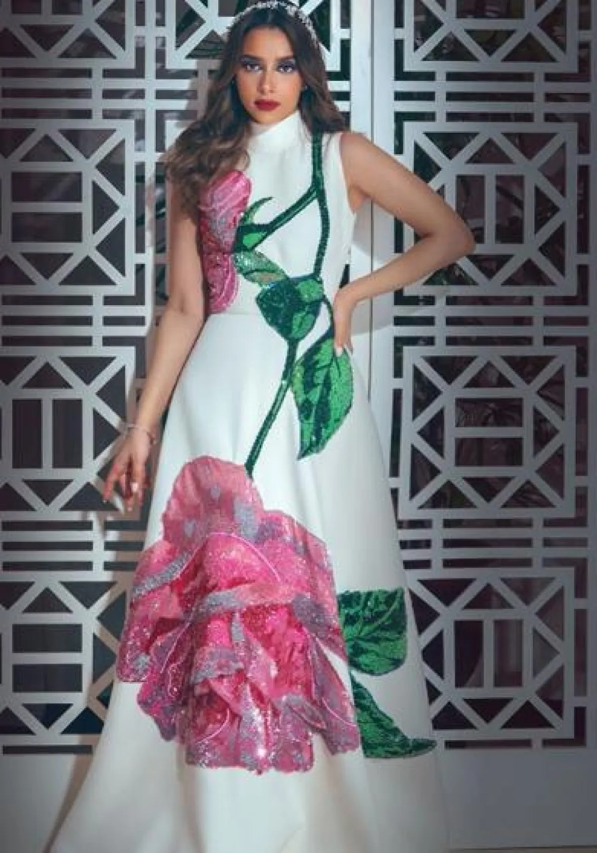 الفساتين الفاخرة المستوحاة من فساتين الأميرات، هي من التصميمات المفضلة بالنسبة لبلقيس وتناسبها كثيرًا بسبب قوامها النحيف، وهذه الاطلالة التي اختارتها في فستان باللون الأبيض من أزي أند أوستا Azzi&Osta كانت مميزة جدًّا، حيث وبالرغم من ضخامة حجم الفستان، غير أنه بدا أنثويًّا وناعمًا وناسب بلقيس كثيرًا، والتطريز بالكريستال الذهبي عليه، زاد اللوك أناقة.